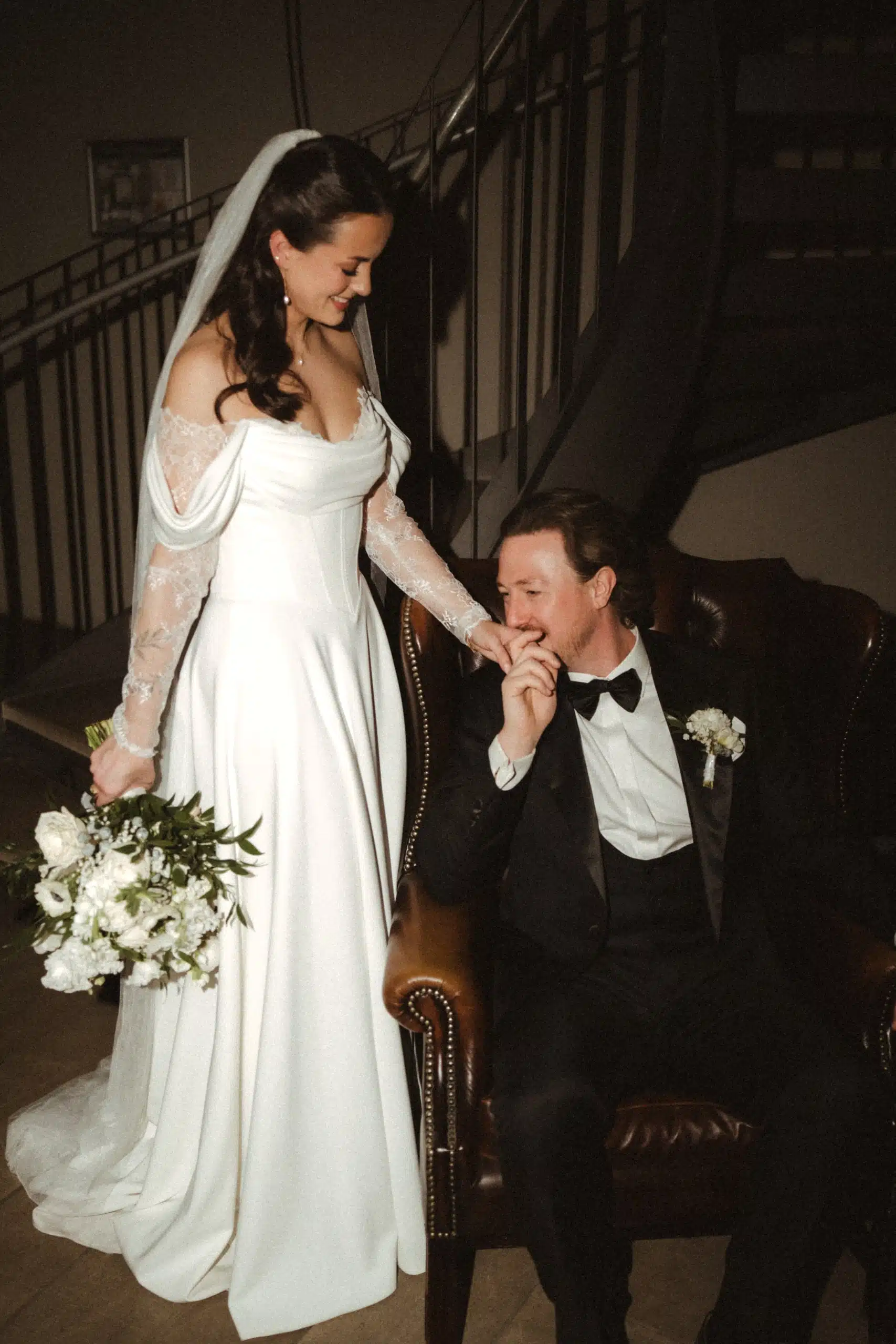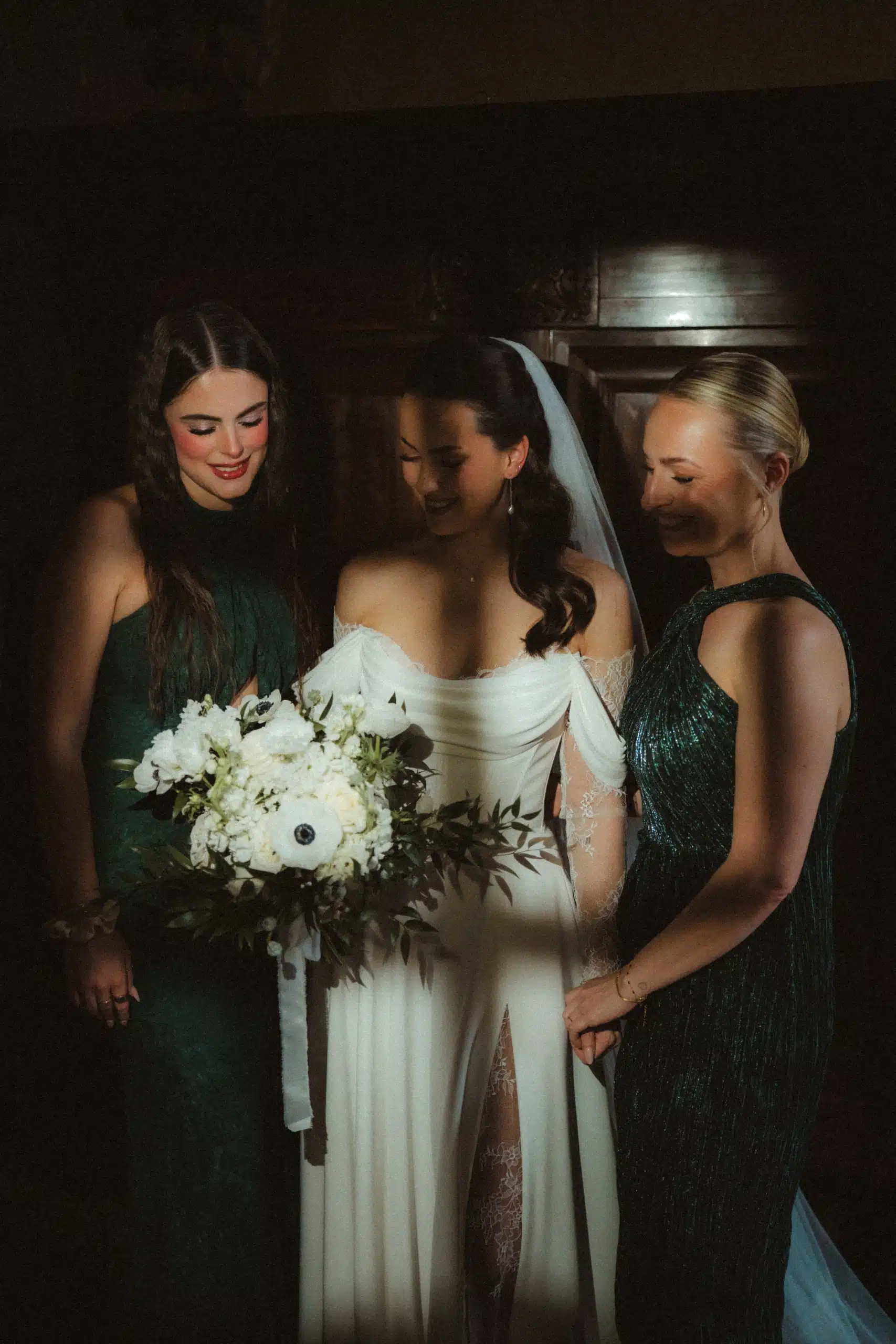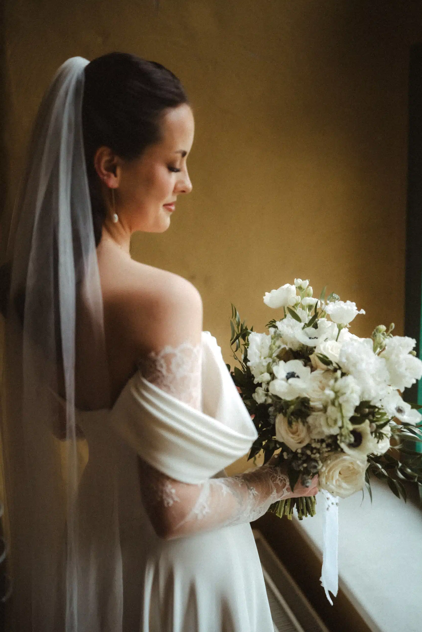 Unsere Hochzeit war eine Winterhochzeit am 20.12.2025. Unser Stil war “winterlich elegant” oder “champagne chic” wie es der Fotograf genannt hat. Alles war sehr klassisch elegant gehalten mit Tisch- & Blumendekoration in weiß und Akzenten in Dunkelgrün. Mit vielen Kerzen/Glaszylindern und zur Jahreszeit passender Beleuchtung, hat die Glashalle im Schloss Horst eine winterlich stimmungsvolle Atmosphäre hergegeben.