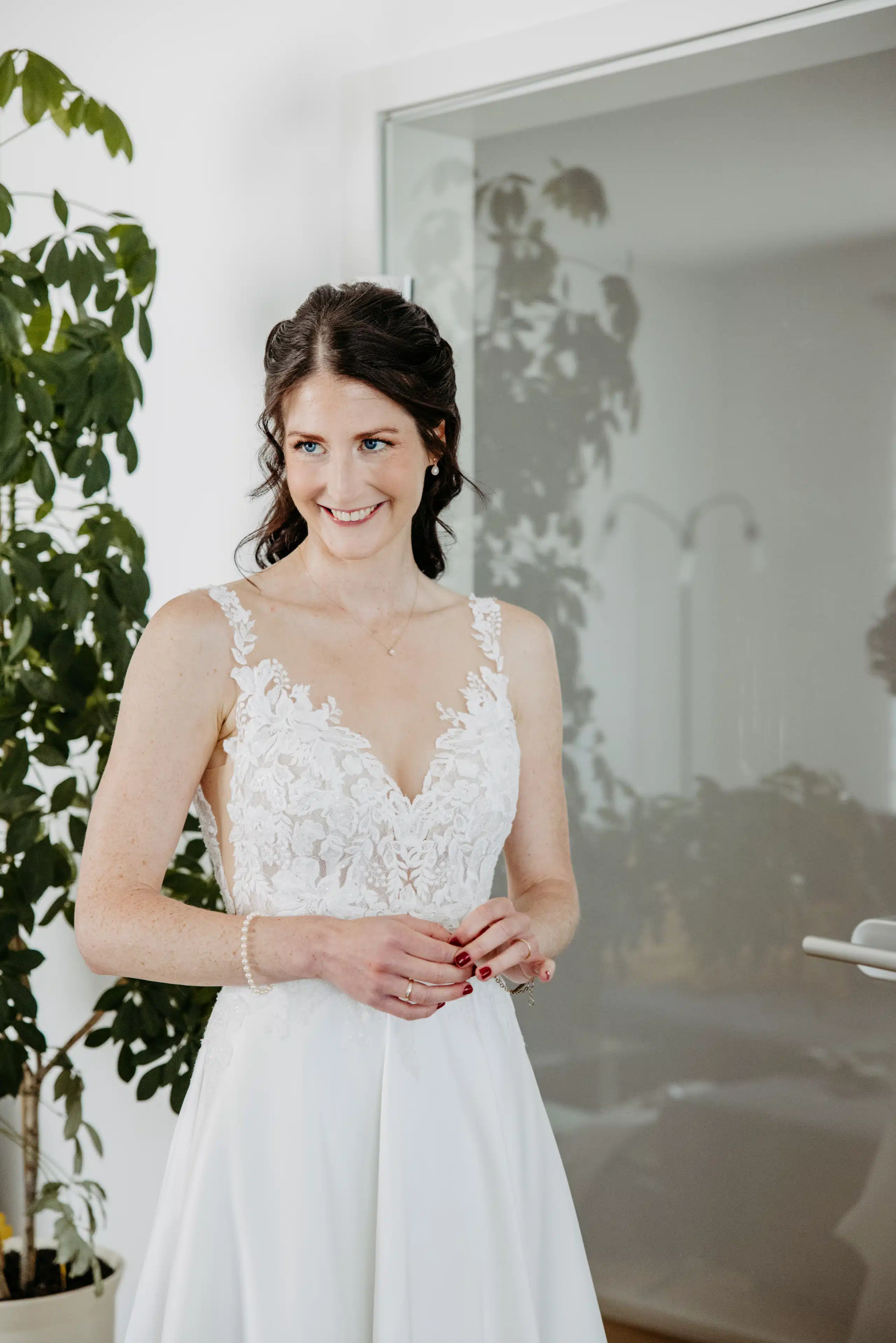 Ich hatte am Ende 3 Kleider in der engen Auswahl, welche ich auf 3 Handys bei einer Cafe-Pause mit meiner Mama und Trauzeugin nebeneinander gelegt habe. Mein Blick ist immer wieder zu dem Kleid der Brautblüte gewandert.