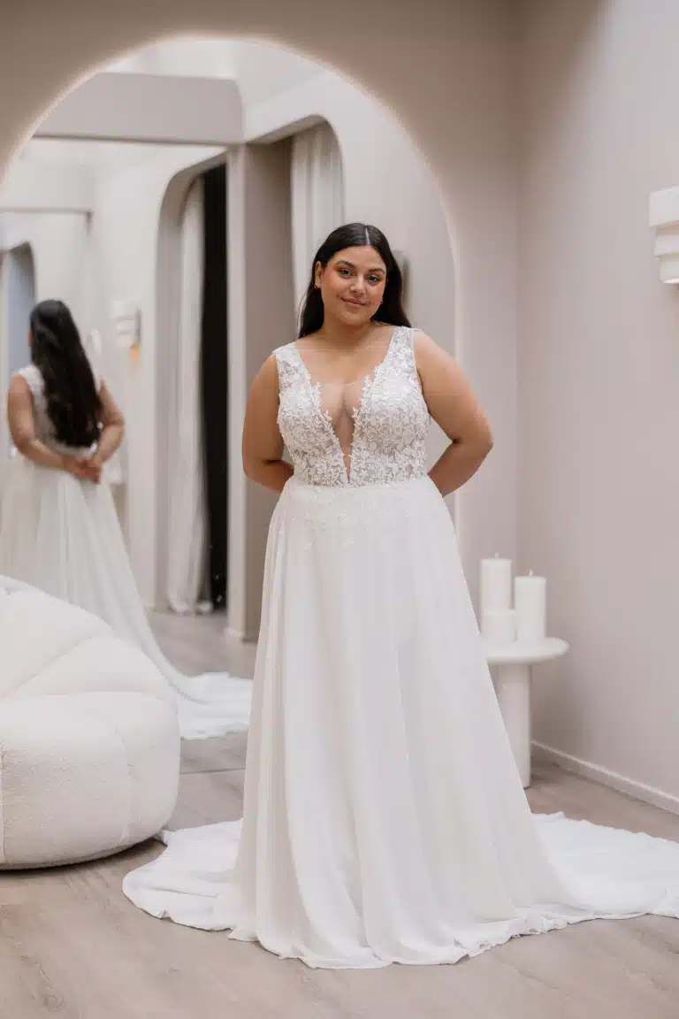 *Der Designer bietet unterschiedlichste Möglichkeiten zur Individualisierung deines Styles an: Ob du den Ausschnitt schließen oder tiefer setzen möchtest, dich für ein Design mit oder ohne Ärmel entscheidest, zusätzliche Spitze bevorzugst, den Rock mit oder ohne Schlitz wählst oder gar Rock und Oberteil von verschiedenen Kleider kombinierst – je nach Kleid ist fast alles nach Absprache und gegen einen Aufpreis möglich!