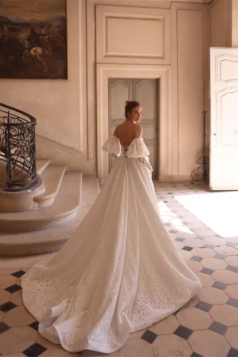 Ein solches Kleid verbindet klassische Romantik mit modernem Anspruch: Durch kunstvoll gesetzte Perlen an Korsage, Saum oder Ärmel entsteht ein Look, der subtil wirkt und dennoch Wirkung zeigt. Ideal für Bräute, die ihre Persönlichkeit zum Ausdruck bringen möchten – mit Stil, Feingefühl und einer Prise Glamour.