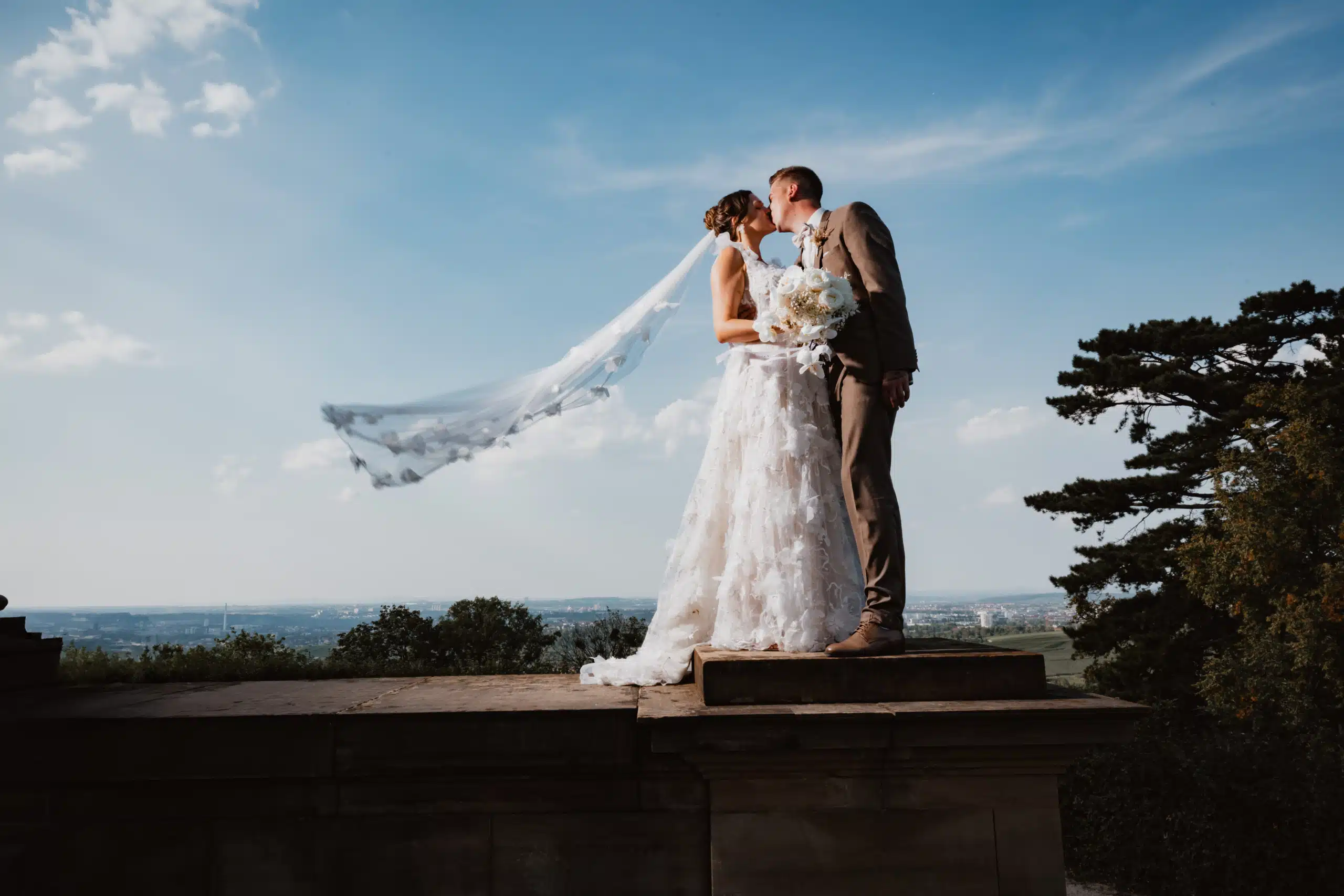 Ich hatte genaue Vorstellungen von meinem Kleid und wollte unbedingt besondere Spitze oder Blüten in meinem Kleid haben und es durfte auch gerne etwas “mehr” sein. Eine A-Linie sollte es sein und eine tolle und ausladende Schleppe. Zu Beginn hatten wir oft eine Kombination aus oben Spitze/Blüte und unten schlicht oder andersherum. Die Brautkleid-Beraterin meinte dann irgendwann zu mir “Warte mal, ich habe da ein Kleid aus der neuen Kollektion, ist erst vor 1-2 Wochen bei uns im Laden eingezogen. Ich glaube das würde perfekt zu dir passen”. Ich hatte zugestimmt und sie kam mit dem Kleid rein auf dem Bügel und ich dachte nur “Ok, WOW, das ist aber ganz schön viel” und siehe da, das Kleid ist es geworden und es war mein absolutes Traumkleid! Ich habe nur noch gestrahlt als ich aus der Umkleide kam und es war so besonders und anders als die anderen Kleider dass ich mich darin direkt wiedergefunden habe. DANKE dafür an euer wundervolles Beratungsteam! Leider weiß ich den Namen meiner Beraterin nicht mehr, sonst würde ich sie gerne auch ganz explizit nochmal erwähnen und loben.