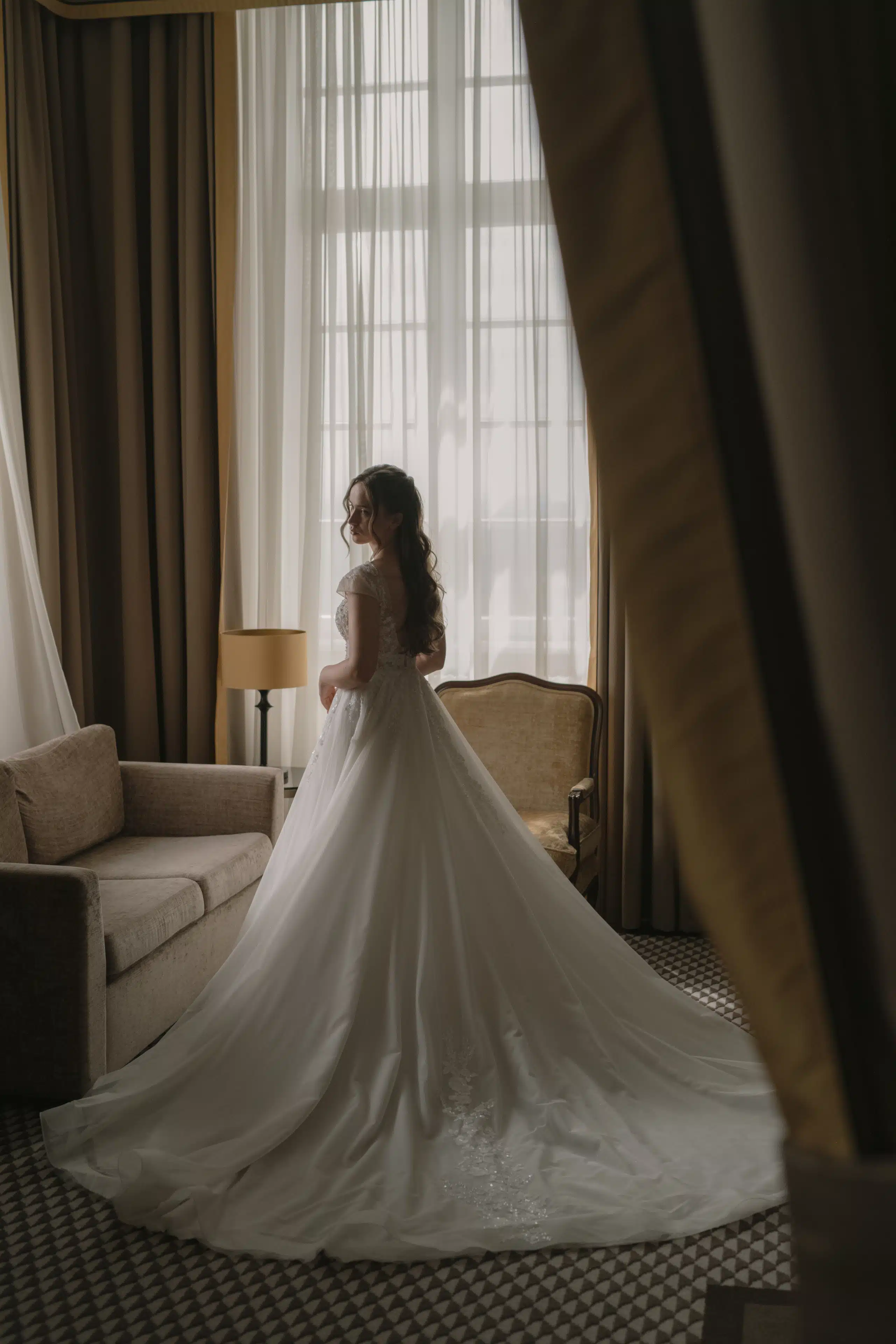 Es war genau das Gegenteil von dem was ich im Kopf hatte, ich wollte Win simples Satinkleid, vielleicht schulterfrei und eng, aber die Brautstylistin hat dieses Kleid rausgezogen. Ich hab es anprobiert und selbst bei den darauffolgenden Kleidern gings mir nicht aus dem Kopf. Also haben wir es nochmal angezogen, mit dem rücken zum Spiegel. Bevor ich mich überhaupt sehen konnte, kamen mir die tränen weil es sich so richtig und besonders angefühlt hat und ich wusste, es ist mein Kleid!