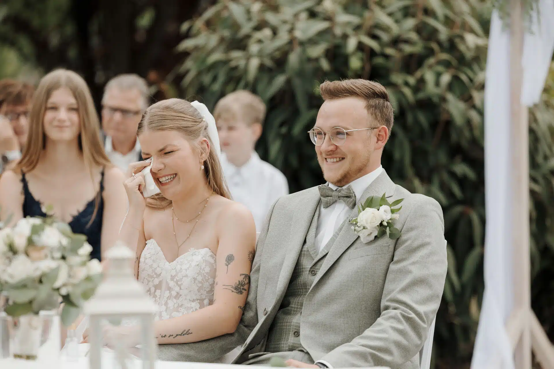 Die Trauung selbst war unglaublich emotional. Gemeinsam mit unseren Gästen durften wir berührende Traurituale erleben, Geschichten hören, die unser Herz erwärmt haben – und in einem besonders stillen Moment entzündeten wir eine Kerze für die Menschen, die an diesem Tag nur im Herzen bei uns sein konnten. Der Moment unserer Verheiratung war für uns magisch. Umgeben von Liebe, getragen von Vertrauen und begleitet von Menschen, die uns am Herzen liegen, haben wir „Ja“ gesagt – zueinander, zu unserer Geschichte und zu all dem, was vor uns liegt.
