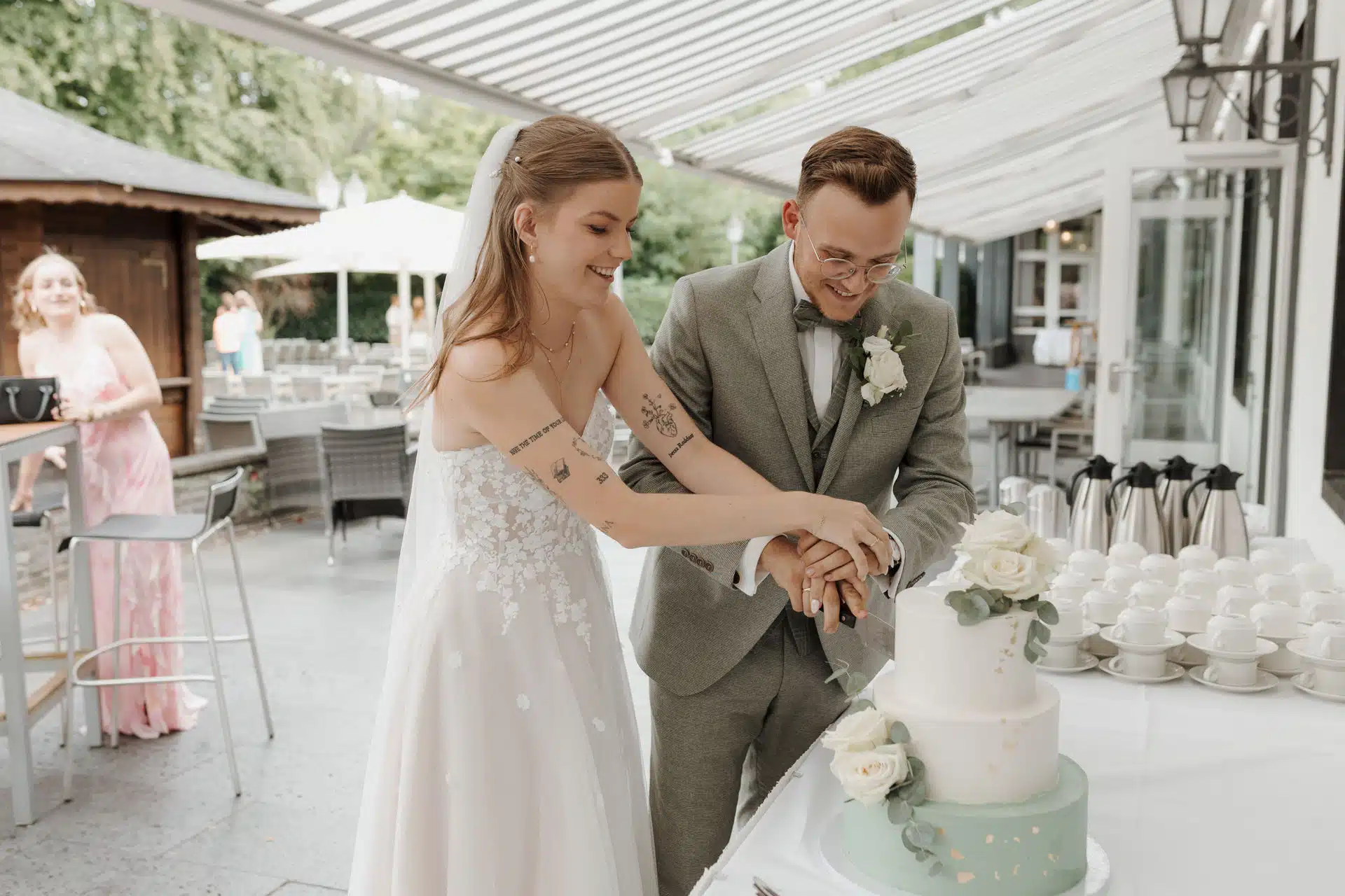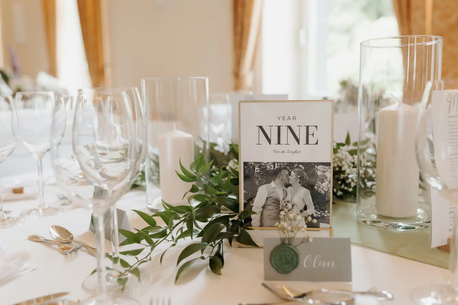Die Tischnummern waren gemeinsame Bilder aus jedem Jahr unserer Beziehung – eine kleine Zeitreise durch unsere gemeinsame Geschichte. Statt eines klassischen Gästebuchs gab es ein LEGO-Gästebuch, in dem unsere Lieblingsmenschen uns kleine Bauwerke und Botschaften hinterlassen konnten. Auch die Musik war Teil unserer Geschichte: Sorgfältig ausgewählte Lieder begleiteten nicht nur das Buffet, sondern auch unseren Hochzeitstanz – zu „Lover“ von Taylor Swift, unserem gemeinsamen Lieblingslied.