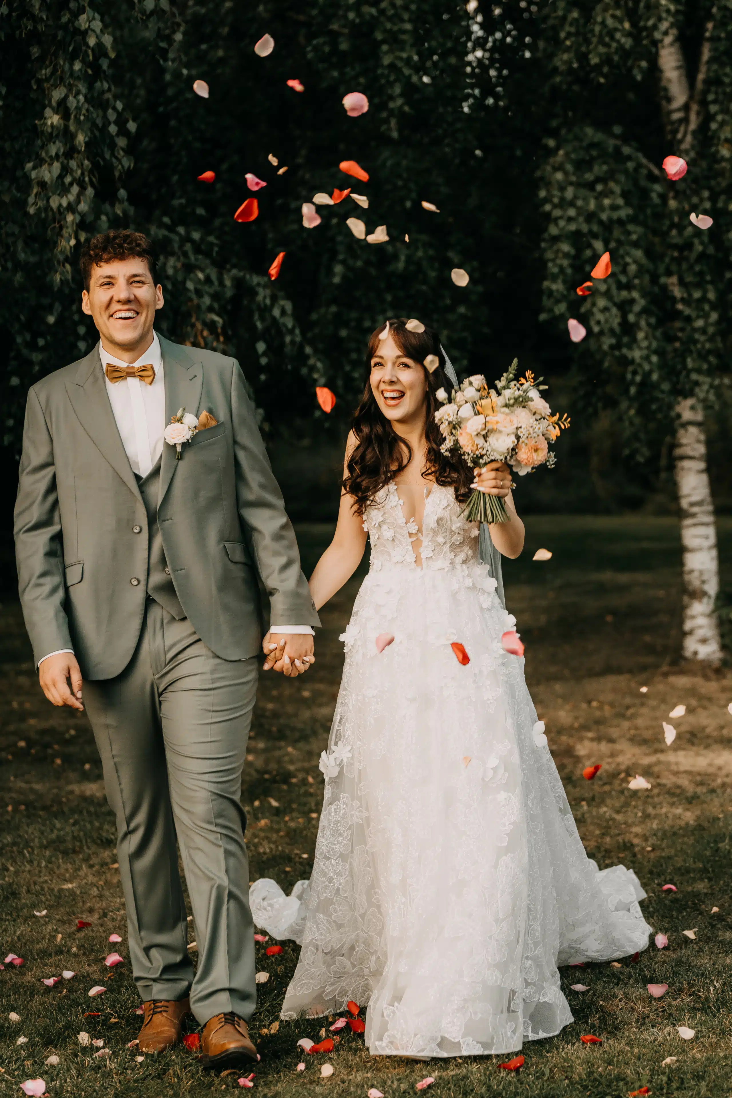 Bezüglich des Wetters: macht euch nicht so viele Gedanken und so viel Stress, es kommt wie es kommt, und es wird trotzdem perfekt. Hätte mir das jemand vorher gesagt, hätte ich es nicht geglaubt. Unsere Juli-Sommer-Hochzeit fand bei 14 Grad und Regen statt (den ganzen Tag!), kein einziger Sonnenstrahl. Wir hatten eine freie Trauung geplant, ohne die Möglichkeit, diese nach drinnen zu verlegen. Trotzdem war der Tag perfekter, als wir uns das hätten jemals vorstellen können.
