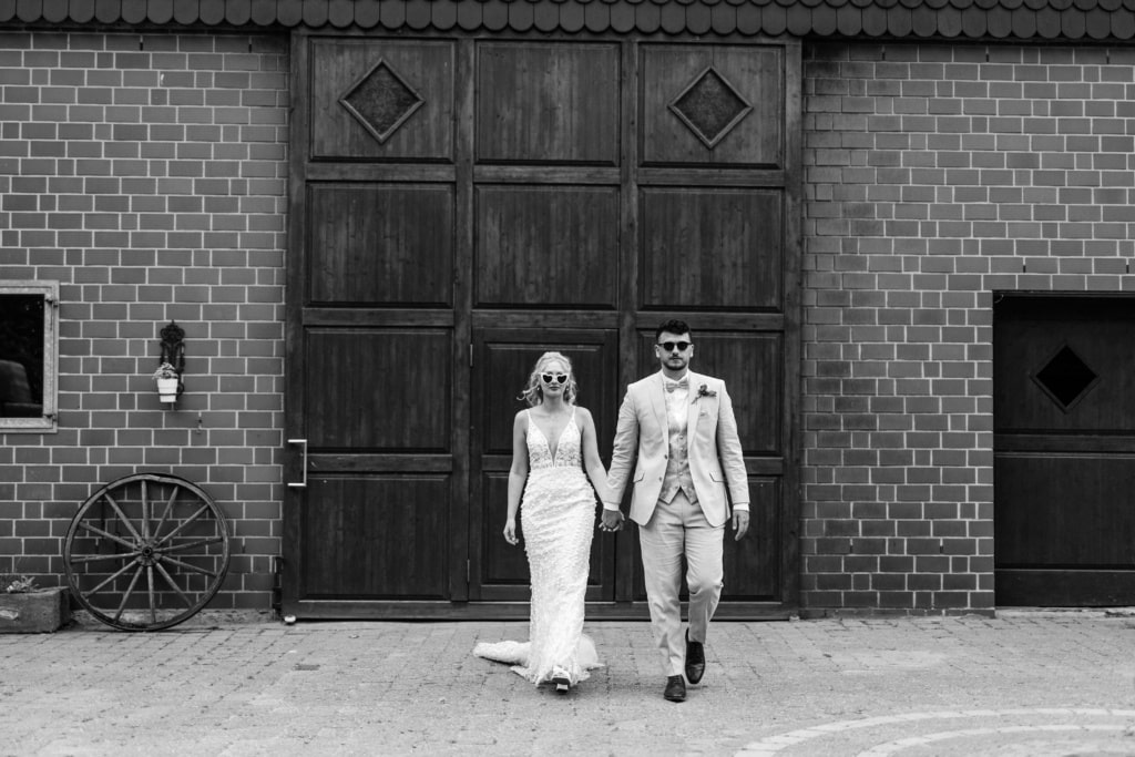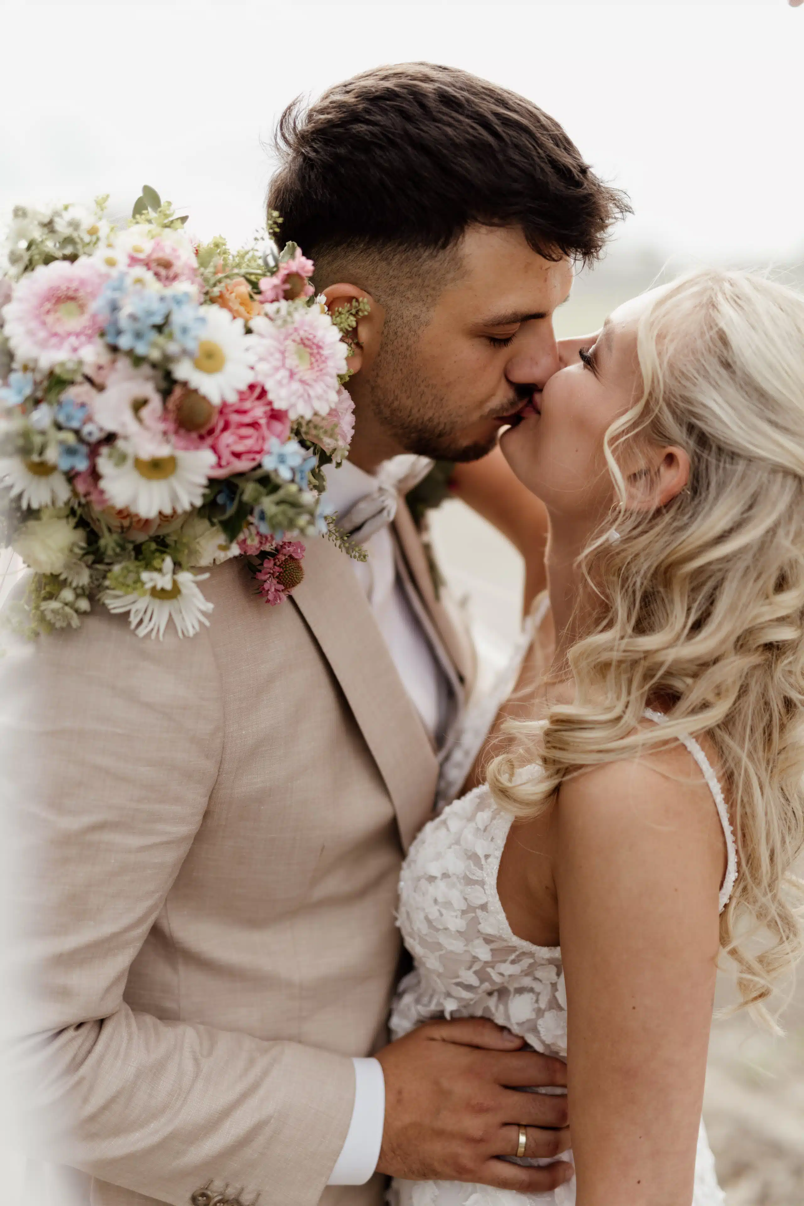 Unsere Hochzeitsfeier fand in keiner üblichen Hochzeitslocation statt, sondern auf dem Hof meiner Eltern. Wir haben dort im Zelt gefeiert mit unseren Familien und Freunden.