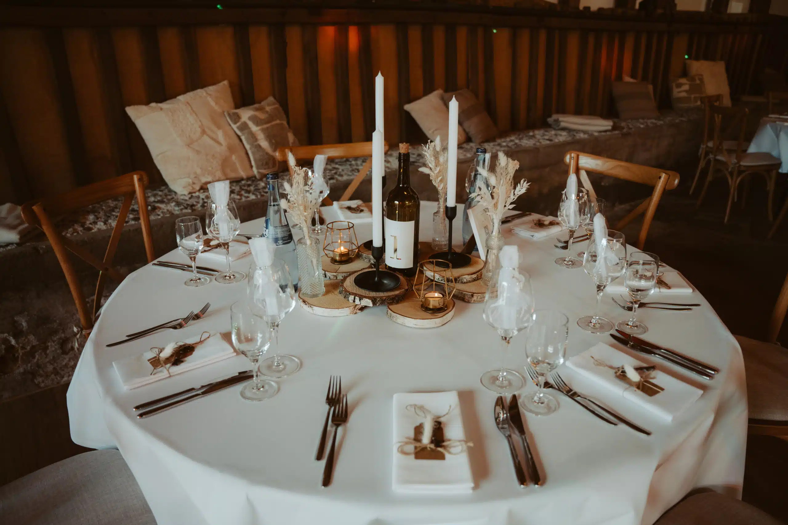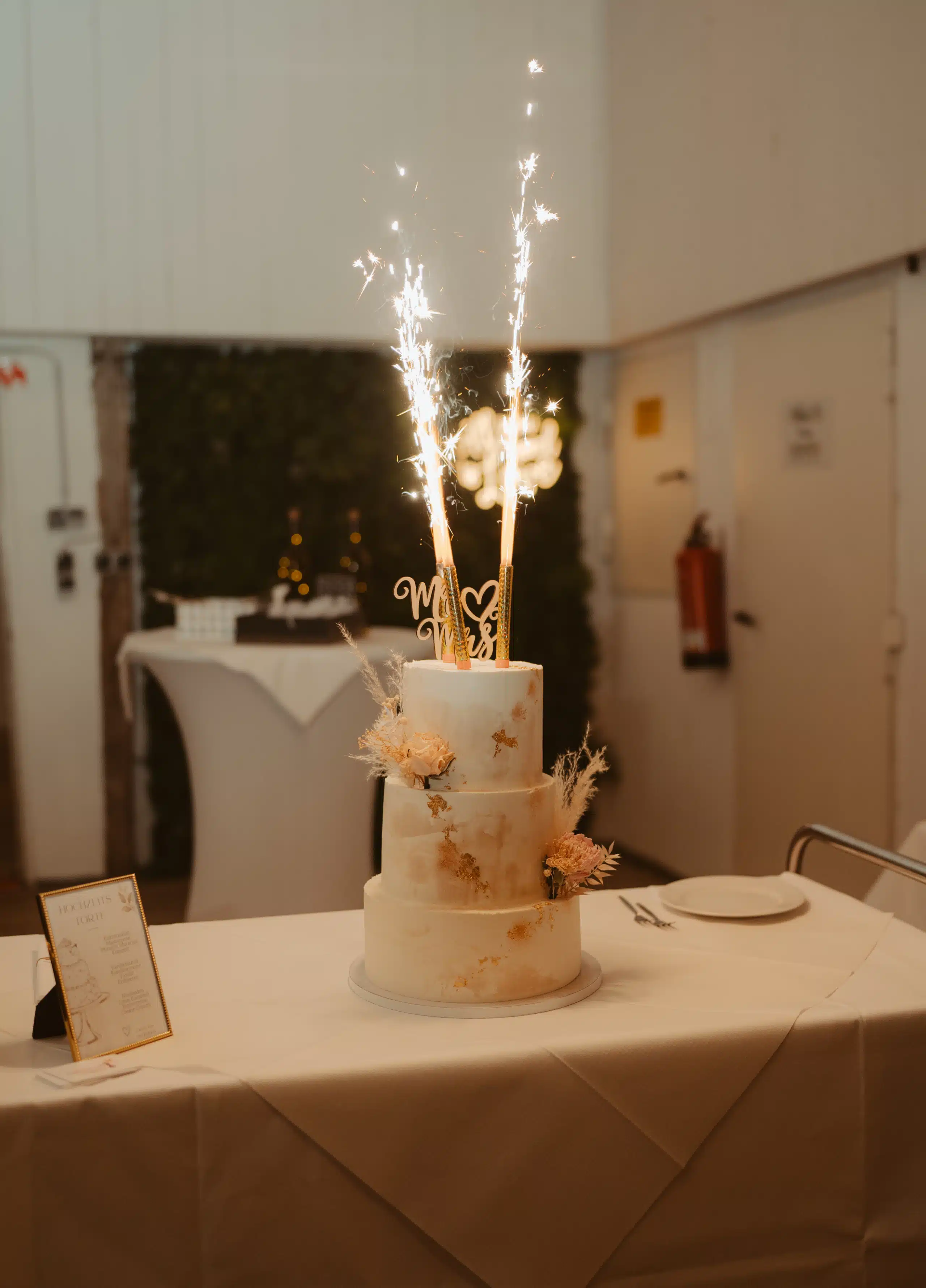 Wir haben alles unter dem Motto Vintage mit Extravaganz gehalten. Unsere Farben waren Creme, Beige und Gold und etwas Glitzer. Von der Deko über die Torte bis hin zur Location hat sich alles wieder gespiegelt.