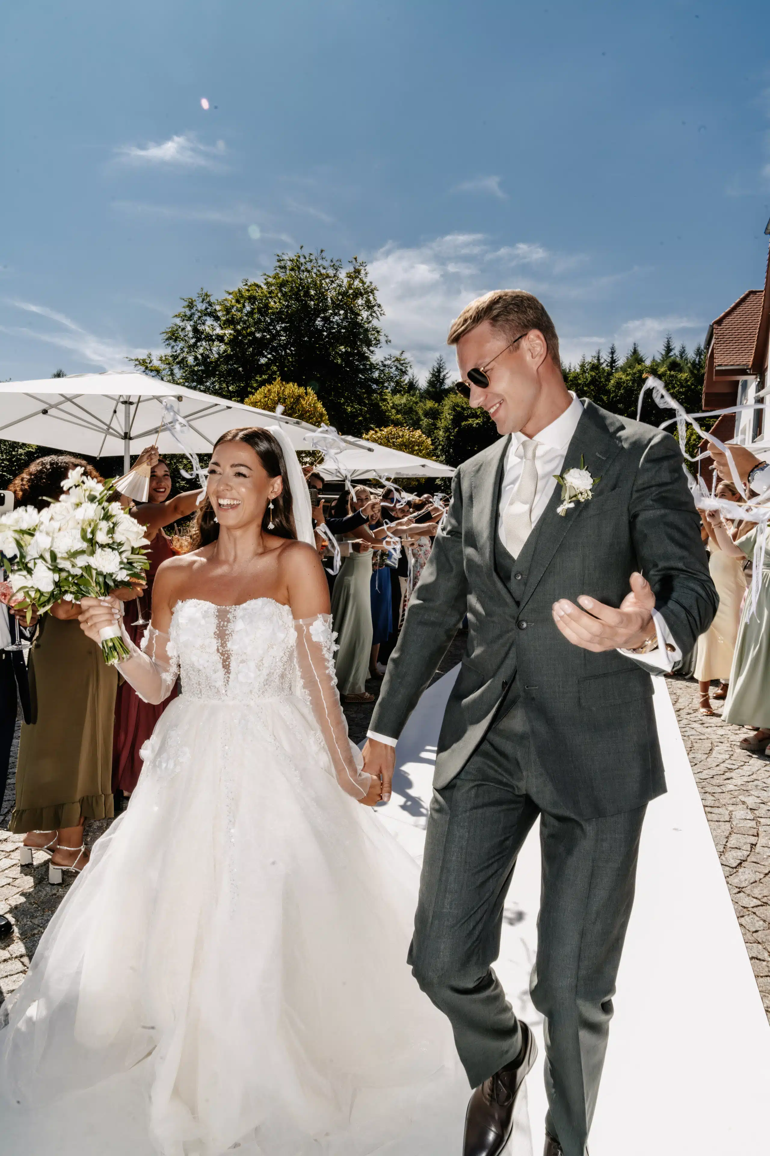 Wir hatten eine traumhafte Sommerhochzeit am 04.07.2025 bei Heidelberg. Der Stil war klassisch mit weißen Blumen und grün. Die Brautjungfern trugen Salbei und die Stimmung war sehr ausgelassen, da die gesamten Gäste dort übernachtet haben. Wir haben bei einem gemeinsamen Frühstück am nächsten Tag die Hochzeit noch einmal Revue passieren lassen.