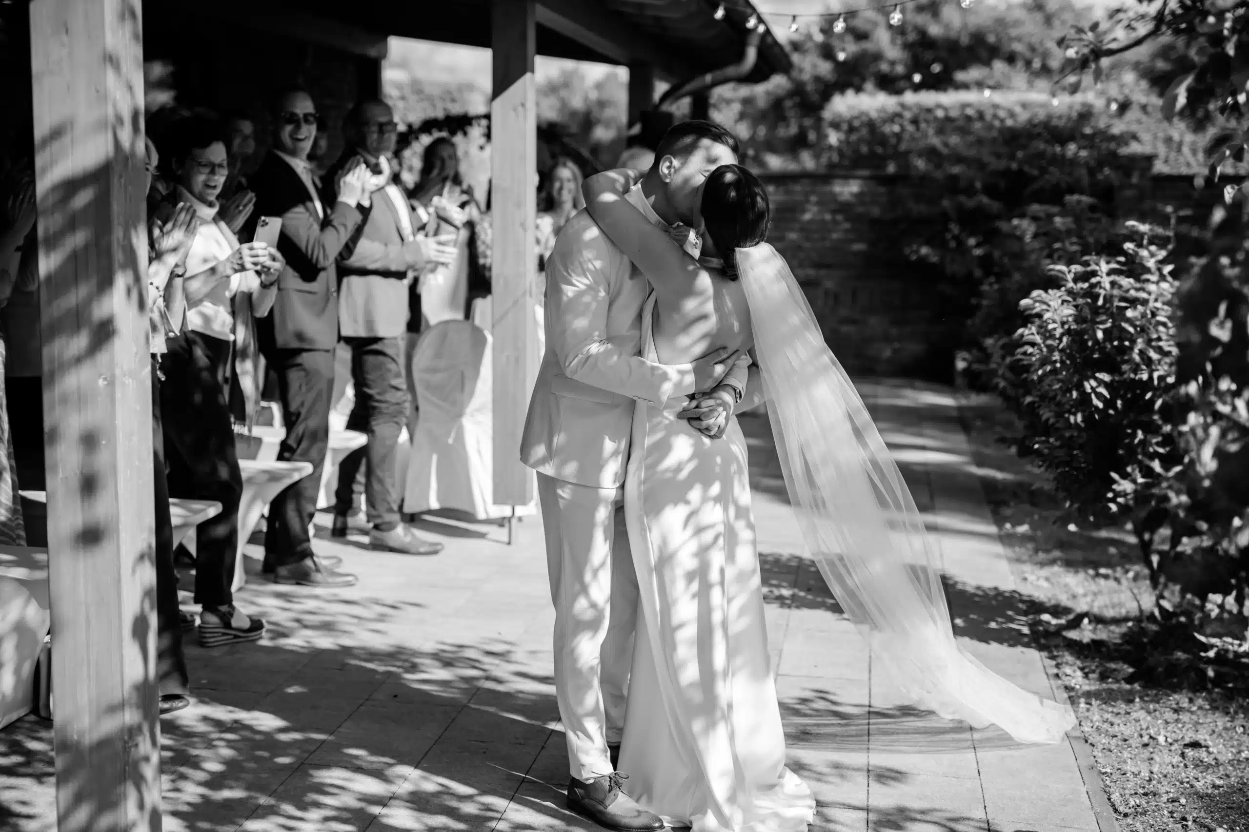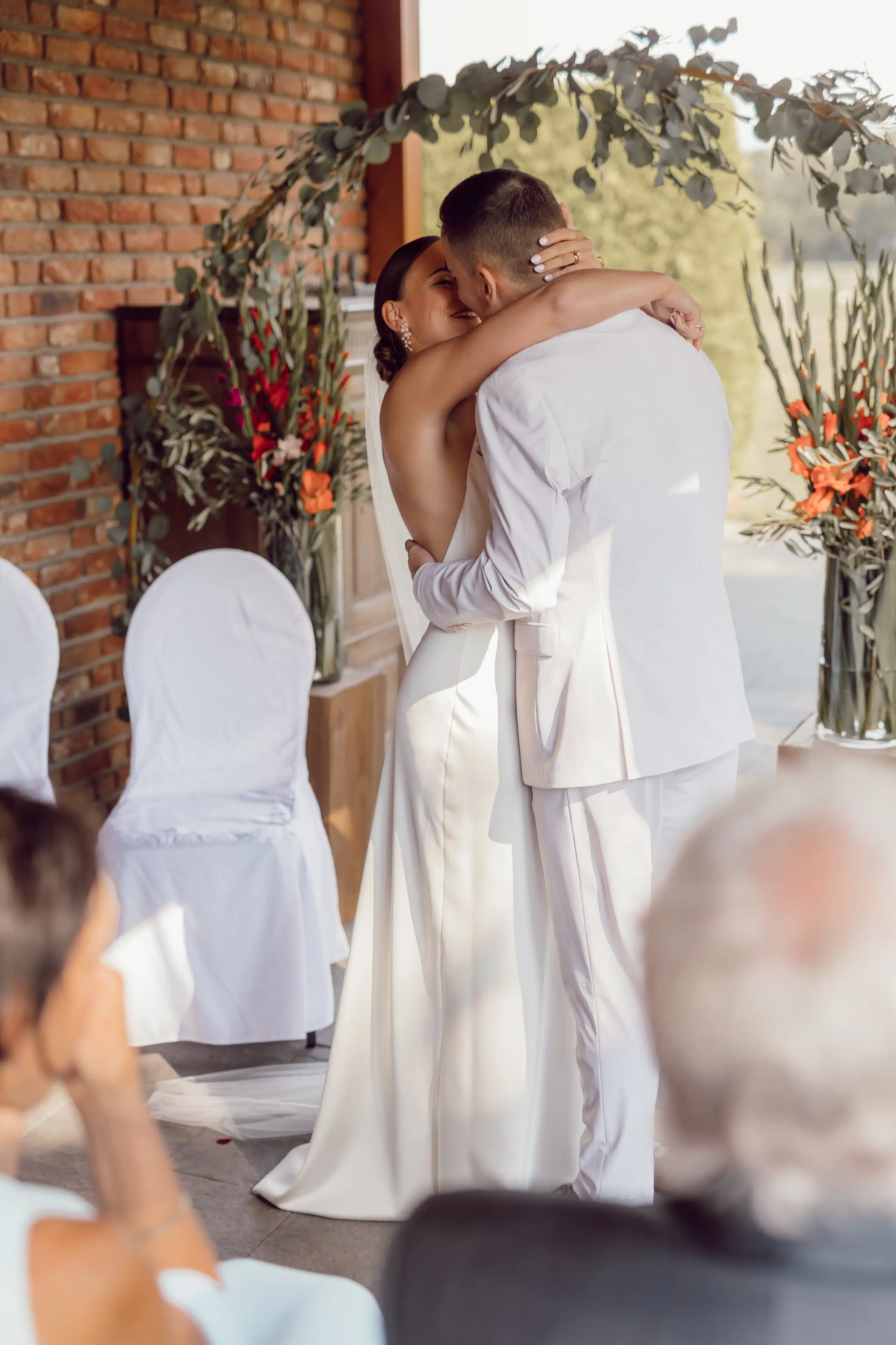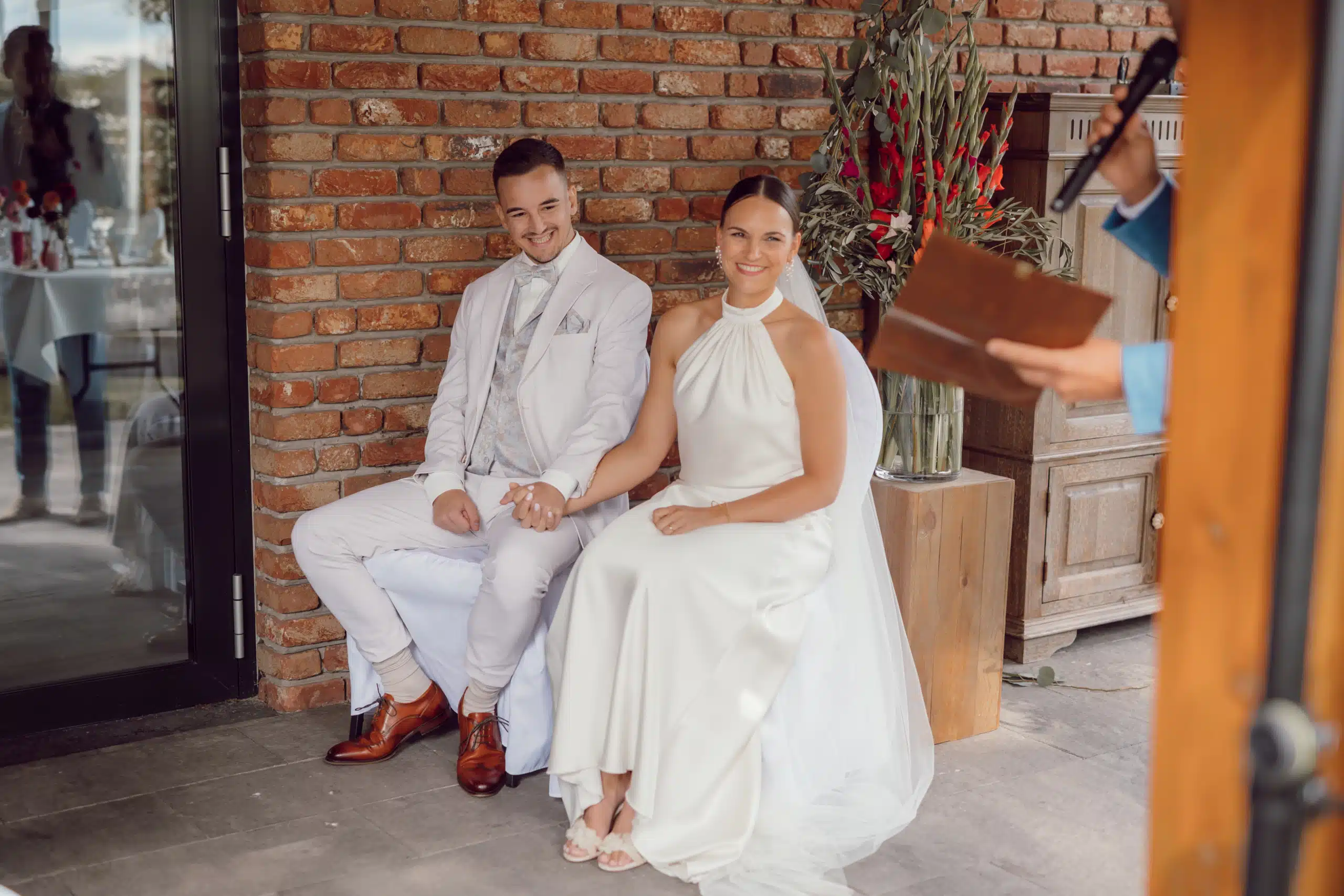 Unsere Hochzeit war ein September-Traum. Wir haben die Deko schlicht gehalten. Passend zu unserem Dress-Code. Dadurch wirkte alles sehr elegant. Insgesamt war es eine Hochzeit mit 120 Gästen und einer freien Trauung und anschließender Party