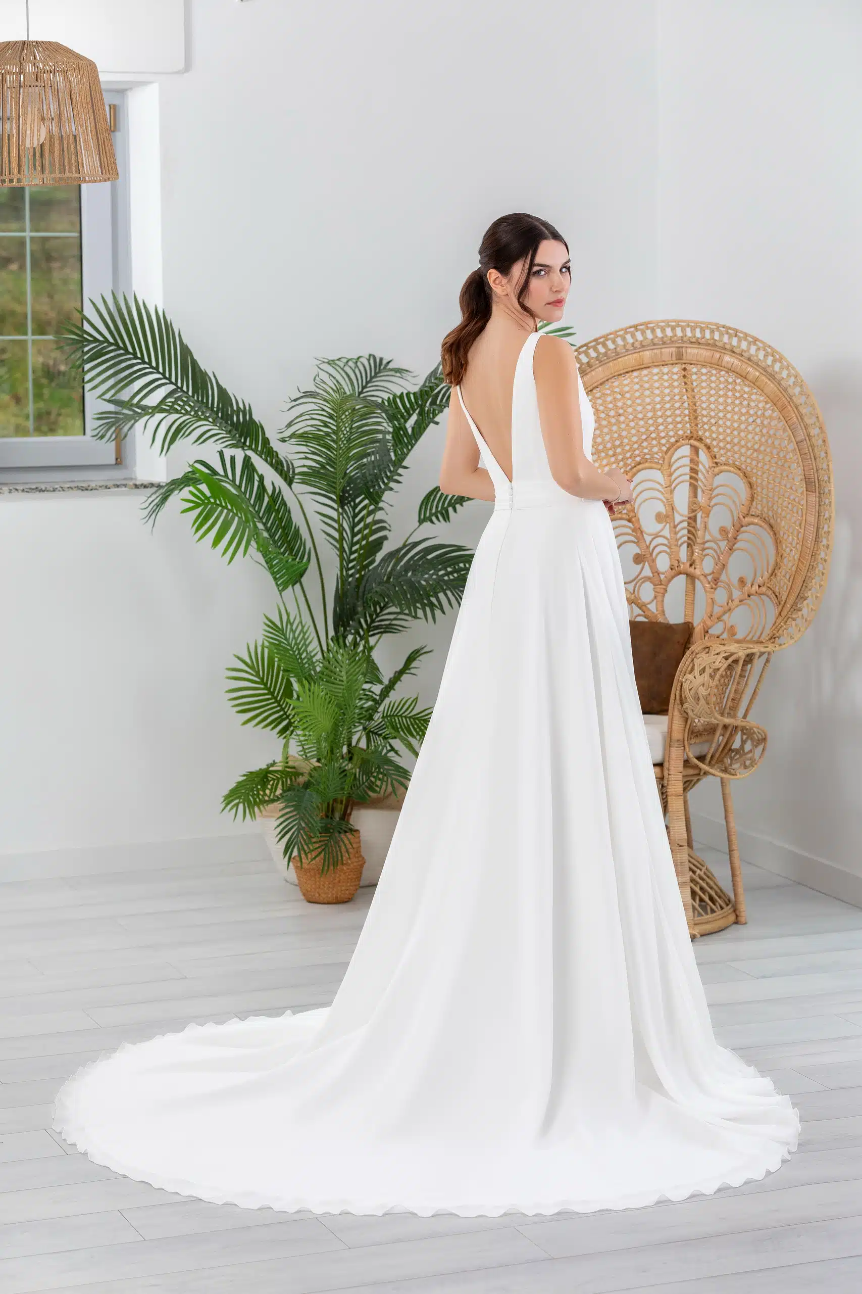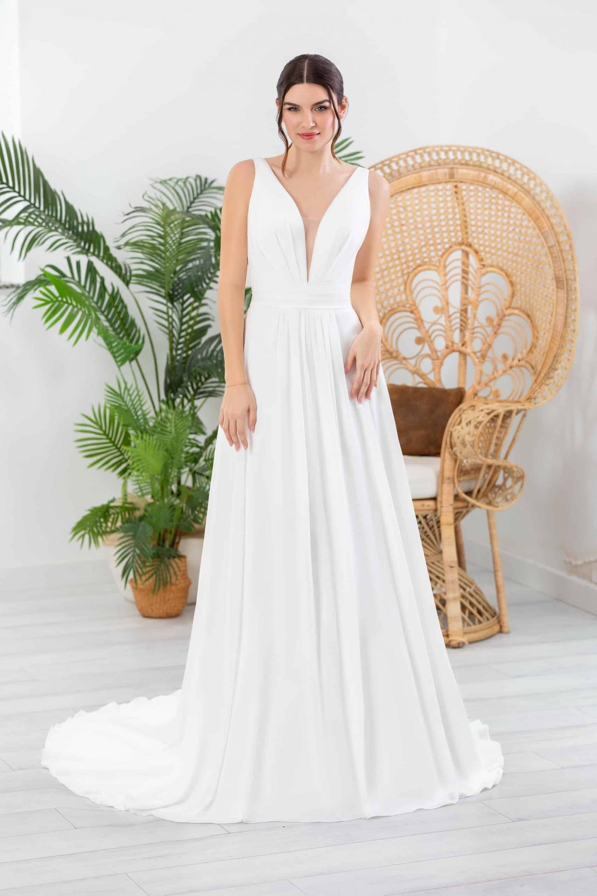 Dieses fließende Chiffonkleid schmeichelt der Figur mit seiner taillierten Silhouette und sorgt für eine elegante, feminine Ausstrahlung. Der tiefe V-Ausschnitt vorne und hinten setzt dezente Akzente, während die breiteren Träger sicheren Halt bieten – perfekt für einen stilvollen Auftritt mit maximalem Tragekomfort.
