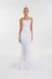 Beherrschen Sie die Kunst minimalistischer Opulenz mit Blanc. Durch die gezielte Drapierung über den Körper fällt das Stretch-Netzgewebe in seidigen Falten und schafft Tiefe und Kontrast. Der tief ausgeschnittene Ausschnitt und das tief sitzende Oberteil mit sichtbaren Stäbchen betonen die Taille. Ein eng anliegender Rock bis zum Knie vervollständigt dieses skulpturale Kleidungsstück, das Eleganz und Substanz gleichermaßen vermittelt.