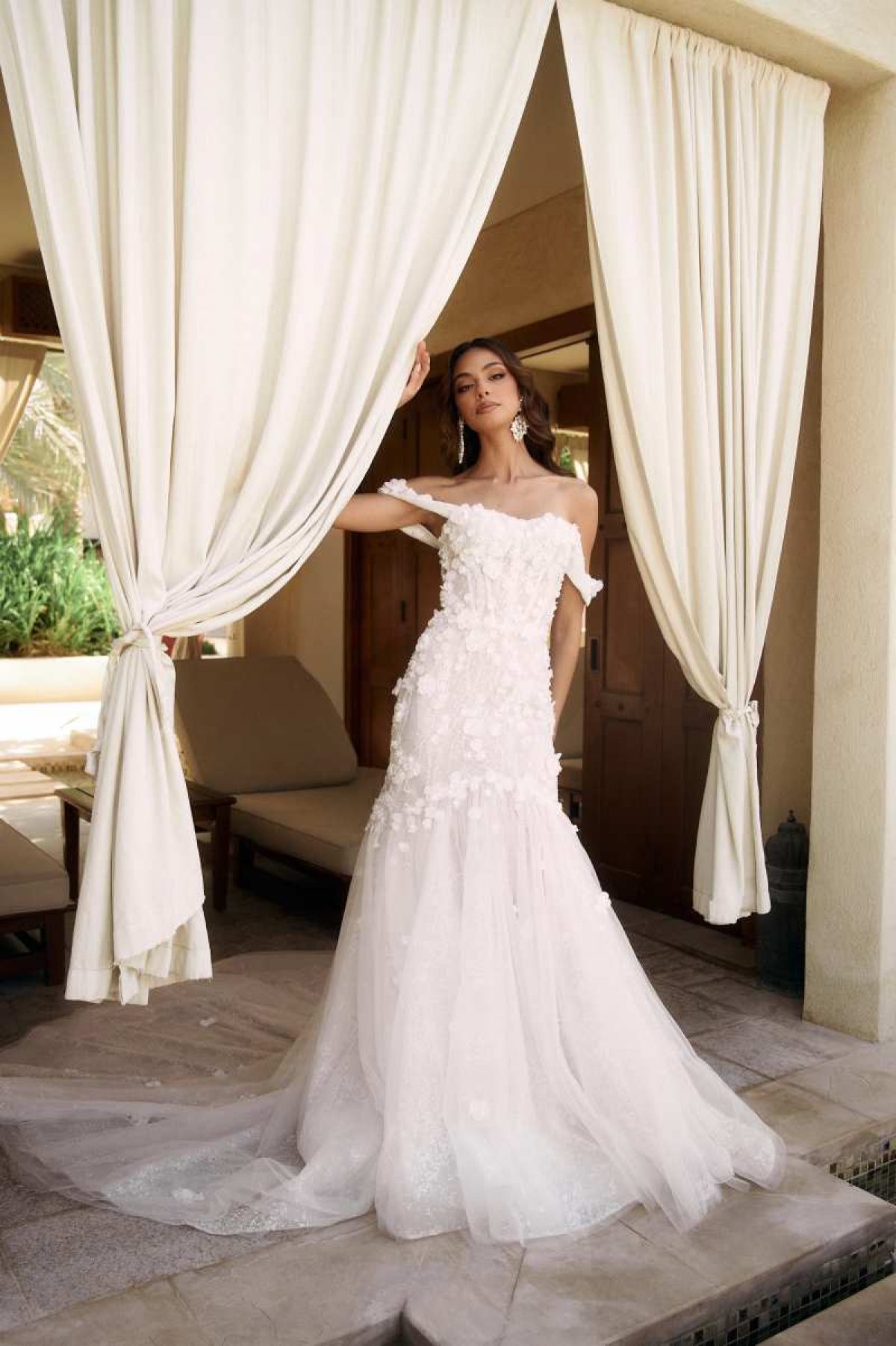 Das Corsagen-Oberteil bringt Struktur und Halt, während der transparente Rücken mit feinen Details für einen überraschenden, modernen Akzent sorgt. „Heaven“ vereint klassische Romantik mit einem frischen, zeitgemäßen Look – ein Kleid, das Herzen höherschlagen lässt.