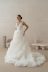 Dieses moderne, dreiteilige Brautkleid vereint puristische Eleganz mit opulenter Extravaganz. Der cleane Zweiteiler besteht aus einem edlen Oberteil mit tiefem V-Ausschnitt und figurbetonender Baskentaille, kombiniert mit einem leicht fließenden Rock für eine elegante Silhouette. Das Highlight: ein pompöser, abnehmbarer Überrock aus unzähligen 3D-Blumen, der jedem Auftritt eine dramatische Note verleiht. Für Bräute, die Statement und Stil perfekt verbinden möchten.