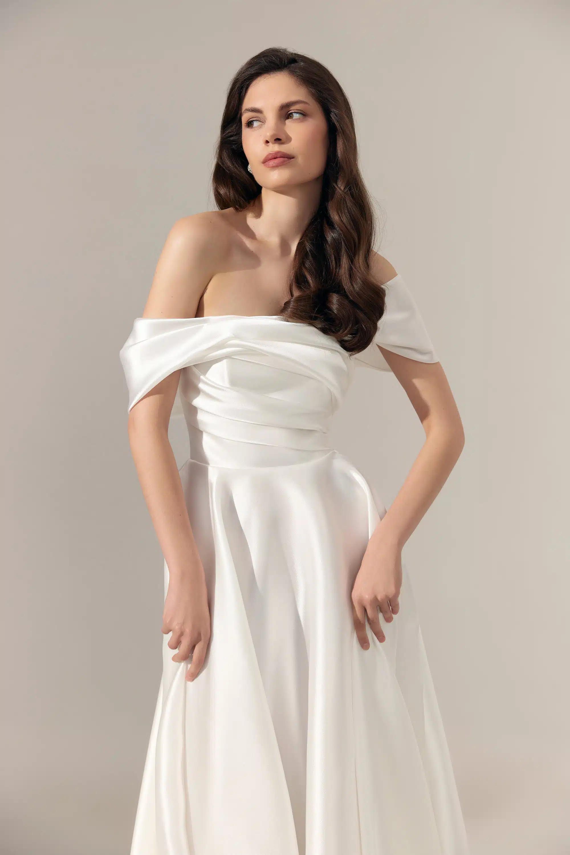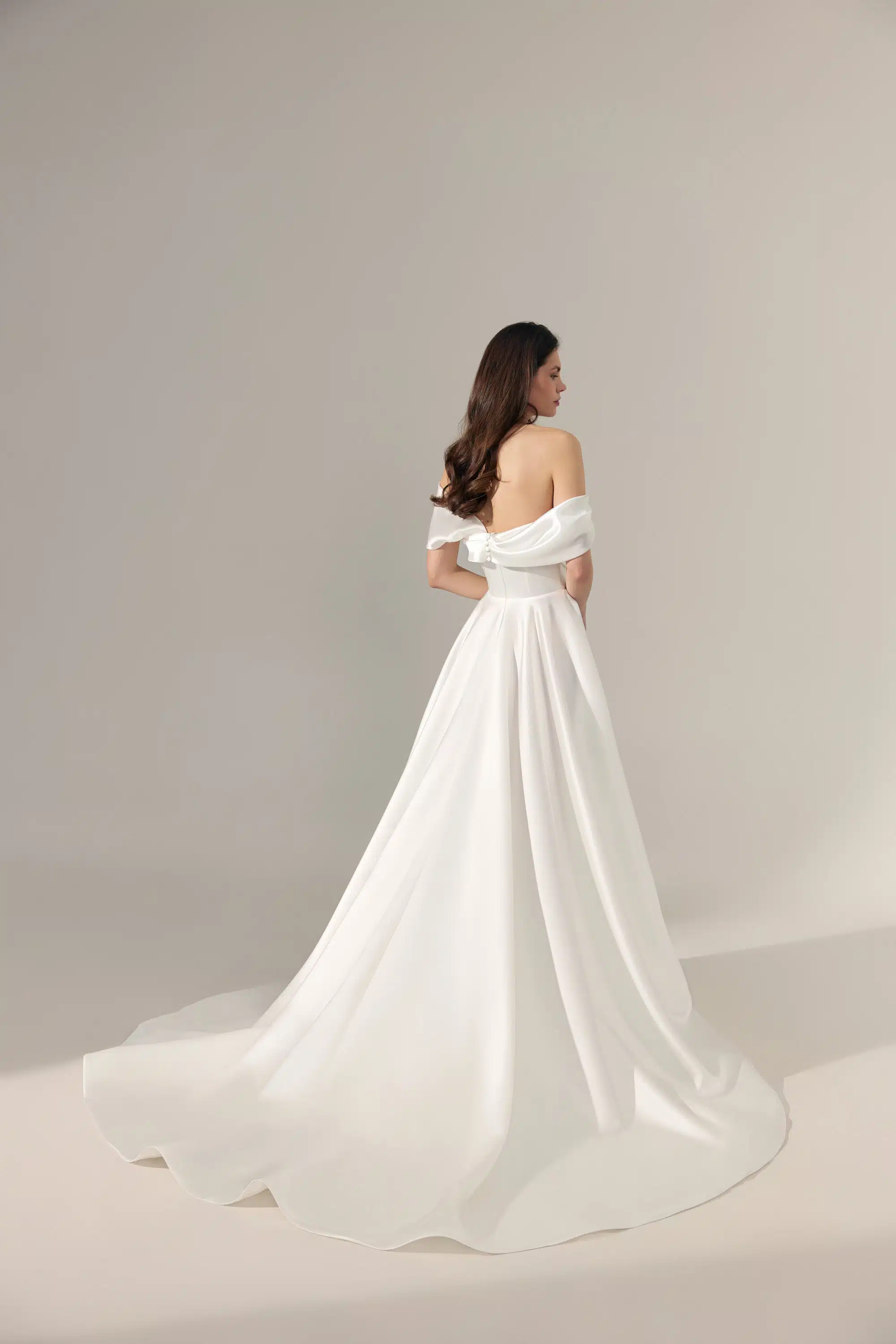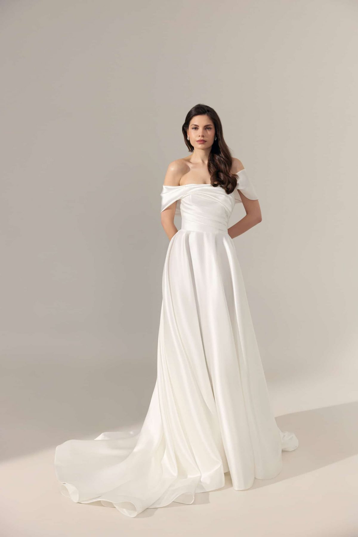 Minimalistisches A-Linie Brautkleid mit geradem Ausschnitt.