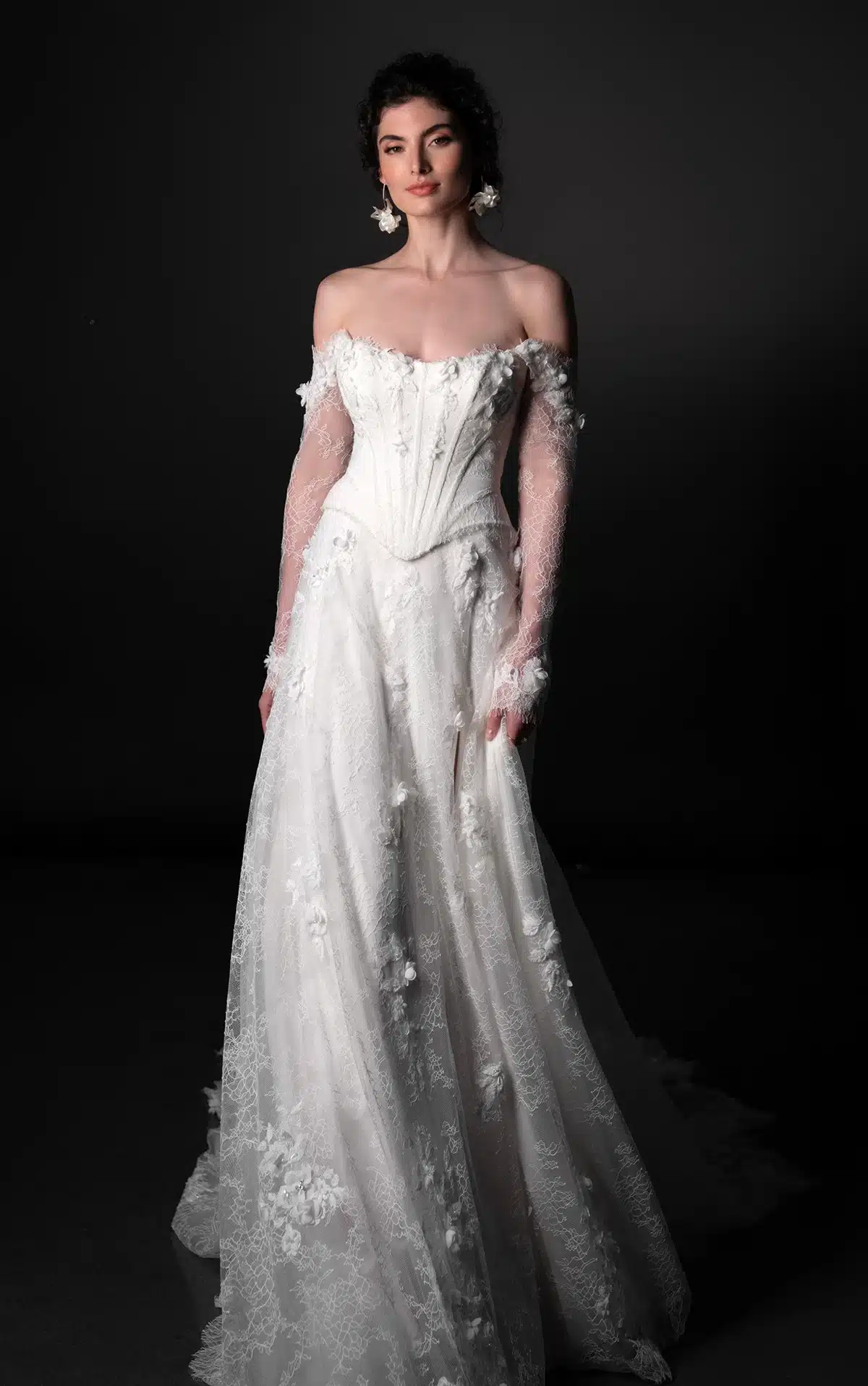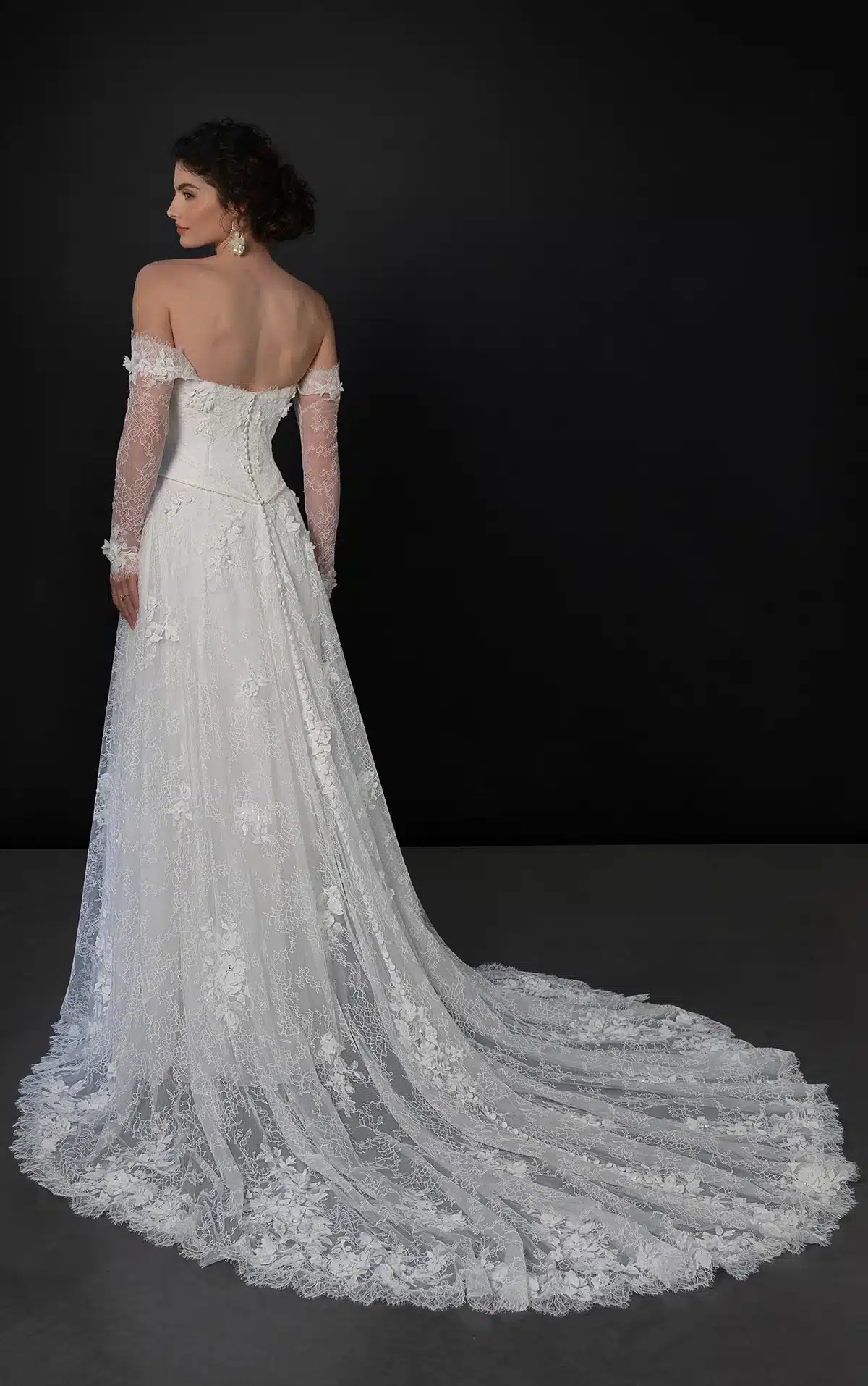 Das Modell ML1953 strahlt zeitlose Romantik mit einem modernen Touch aus und ist ein atemberaubendes, zweiteiliges A-Linien-Brautkleid aus Kunststoff, das für die modebewusste Braut entworfen wurde. Das schlichte, trägerlose Oberteil sorgt für einen eleganten und strukturierten Look, während die abnehmbaren, schulterfreien, transparenten langen Ärmel einen weichen, romantischen Touch mit vielseitigen Stylingmöglichkeiten verleihen. Ab der Taille fällt der luxuriöse A-Linien-Rock anmutig bis zum Boden und öffnet sich in einem gewagten hohen Beinschlitz, der einen Hauch von zeitgenössischer Dramatik vermittelt. Auf der Rückseite befindet sich eine Reihe von mit Stoff bezogenen Knöpfen, die sich nahtlos vom Oberteil bis zur Länge der Schleppe ziehen und dem Design ein klassisches Brautelement verleihen. Minimalistisch und doch unbestreitbar schick, ist dieses Kleid für Bräute gedacht, die sich für ihren Hochzeitstag mühelose Raffinesse und subtile Dramatik wünschen.