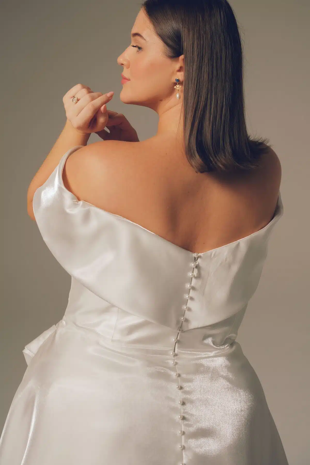 Wie aus einem Gemälde oder einer Preisverleihung entsprungen, strahlt das exquisite Serana-Kleid luxuriöse Opulenz aus. Der drapierte Stoff aus Organza glänzt, während er das Mieder umspielt und über den Hüften asymmetrische Falten für eine atemberaubende Ballkleidsilhouette bildet. Die schulterfreien Ärmel und der kleine Halsausschnitt fließen anmutig in den Rücken und werden mit einer Perlenreihe geschlossen, die sich über die gesamte Schleppe erstreckt. Serena ist ein wahr gewordener Traum für die anspruchsvolle Braut.
