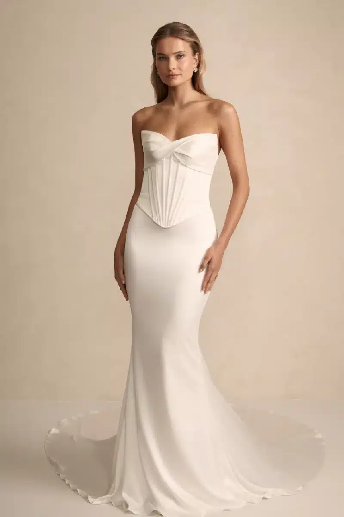 Sol ist unsere Illusionskombination aus Oberteil und Rock, eine brandneue Kreation für MWL, die die Eleganz eines Oberteils und Rocks mit der nahtlosen Schönheit eines ganzen Kleides verbindet. Entworfen, um Bräuten das Gefühl eines kompletten Brautkleides zu vermitteln, ohne dass sich einzelne Teile verschieben oder hochrutschen.