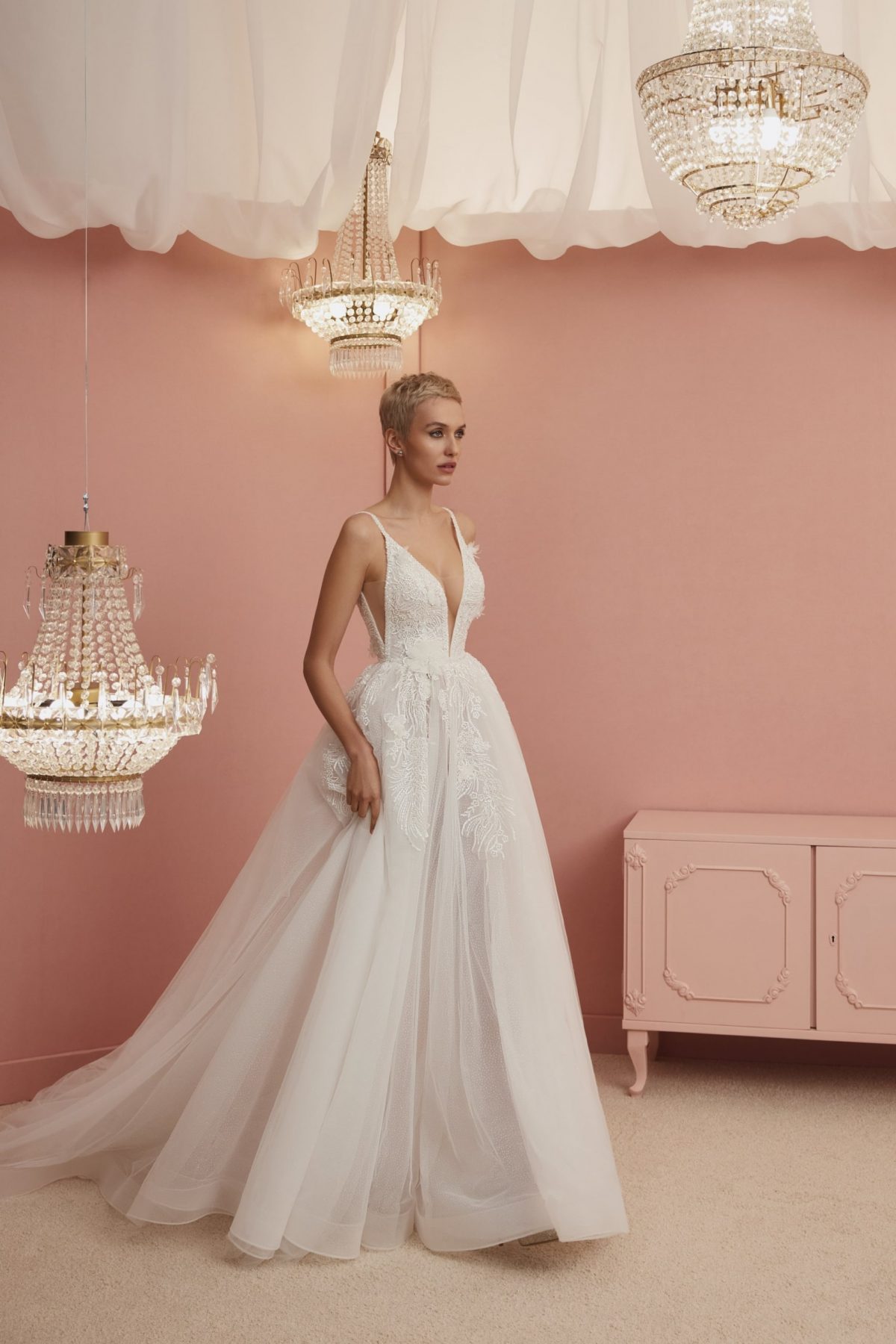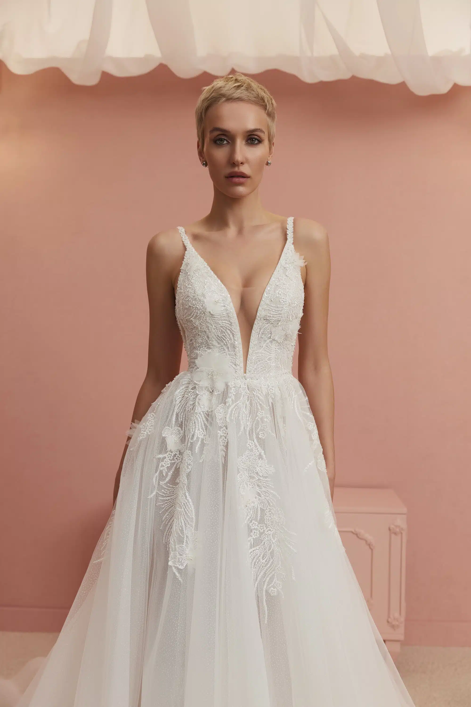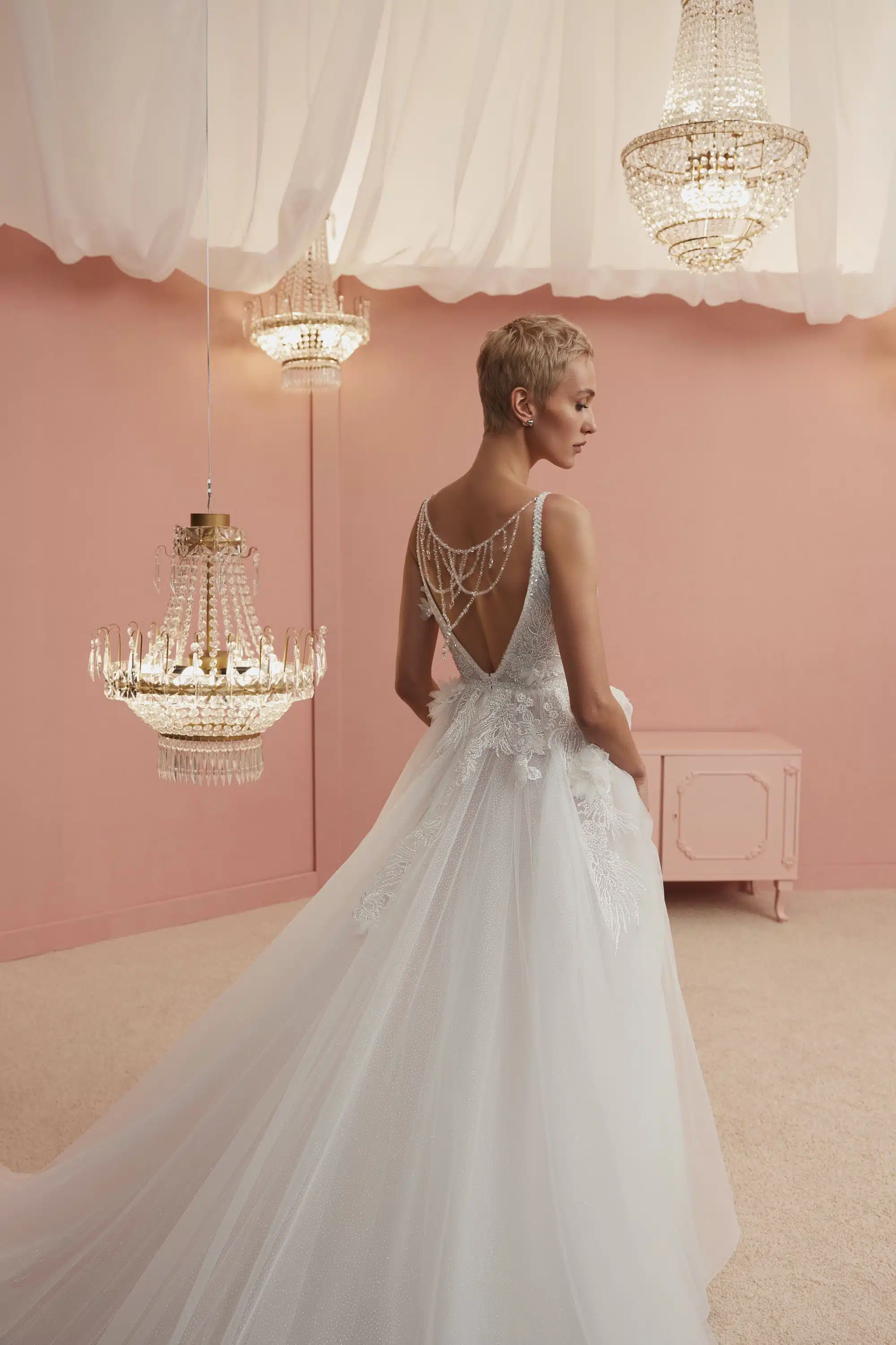 A-Linien-Brautkleid mit V-Ausschnitt und offenem Rücken