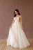 Ein Hauch von Romantik trifft auf zeitlose Eleganz: Dieses Brautkleid begeistert mit einem femininen V-Ausschnitt und einem Oberteil aus zarter, floraler Spitze, die sanft in den leichten Tüllrock übergeht. Unterhalb des luftigen Tülls schimmert dezente Spitze hindurch – für einen subtilen, verträumten Look, der jede Braut erstrahlen lässt.