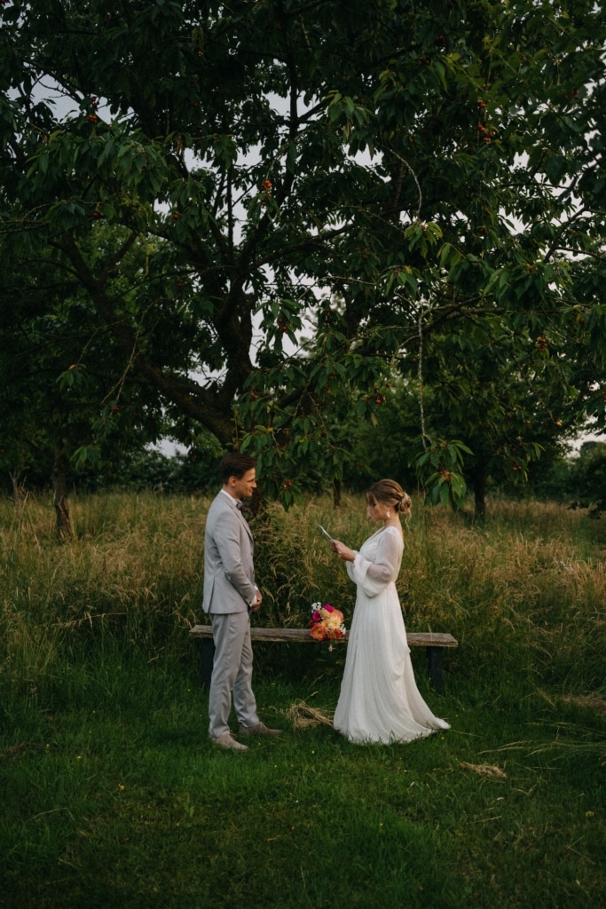 Wir wollten unbedingt in der Natur in einer freien Trauung uns das Ja Wort geben. Wir haben bereits am 14.06.24 standesamtlich geheiretet und wollten genau 1 Jahr später am gleichen Datum groß heirateten also 14.06.25. Unser Tag war unglaublich schön und genauso wie wir uns das vorgestellt haben. Wir mussten leider unsere Trauung 20 Min nach hinten verschieben wegen Platzregen, aber das war nicht weiter schlimm. An unserem Tag gab es alles. 35 Grad und Sonne mit Gewitter und Regen und wieder Sonnenschein aber trotzdem einfach perfekt. Wir sind unglaublich glücklich über all unsere Dienstleister.