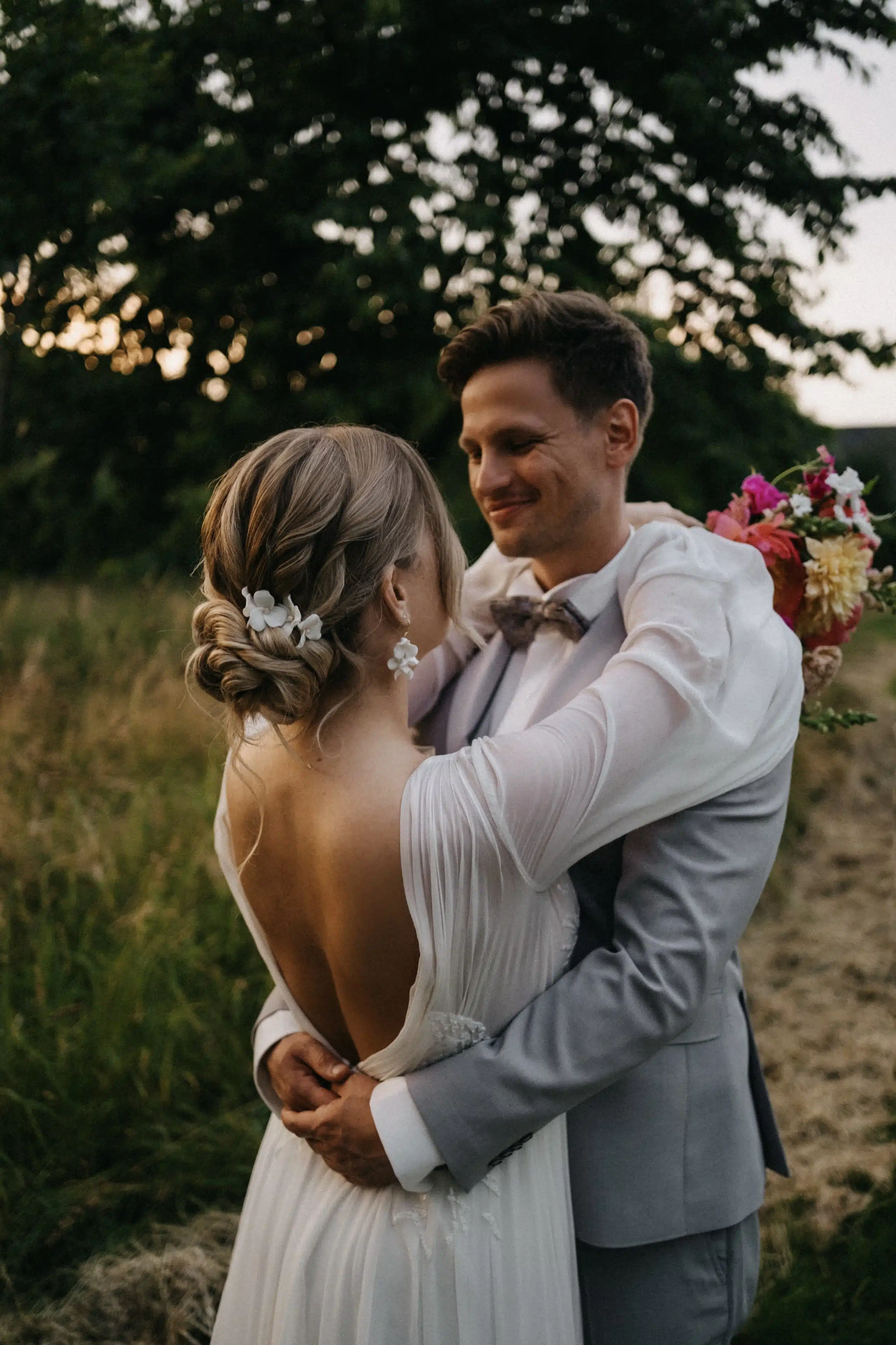 Kennen gelernt haben wir uns 2022 (ganz klassisch wie man das heute so macht) über Tinder. Ich hatt noch nie Tinder und hab es einfach mal ausprobiert. Sascha war mein erstes Date und ich wusste sofort nach dem ersten Date; DEN werde ich heirateten. Ihn oder keinen. Hab direkt auch alles so erzählt und wurde natürlich erstmal belächelt. Aber ich sollte Recht behalten. Dann standen die ersten Urlaube an und nach 1 Jahr entschieden wir uns zusammen zu ziehen. Nach 1 1/2 Jahren bekam ich meinen Antrag auf Kreta, womit ich überhaupt nicht gerechnet hatte und war einfach so überwältig und glücklich. Es war einfach so emotional. Jetzt sind wir seit 3 1/2 Jahren zusammen, verheiratet und so gespannt auf die gemeinsame Zukunft. Ich kann es kaum abwarten mit ihm noch all die Abendteuer zu erleben, die einem das Leben so bereit hält. Er ist einfach mein bester Freund und der liebste Mensch der Welt.
