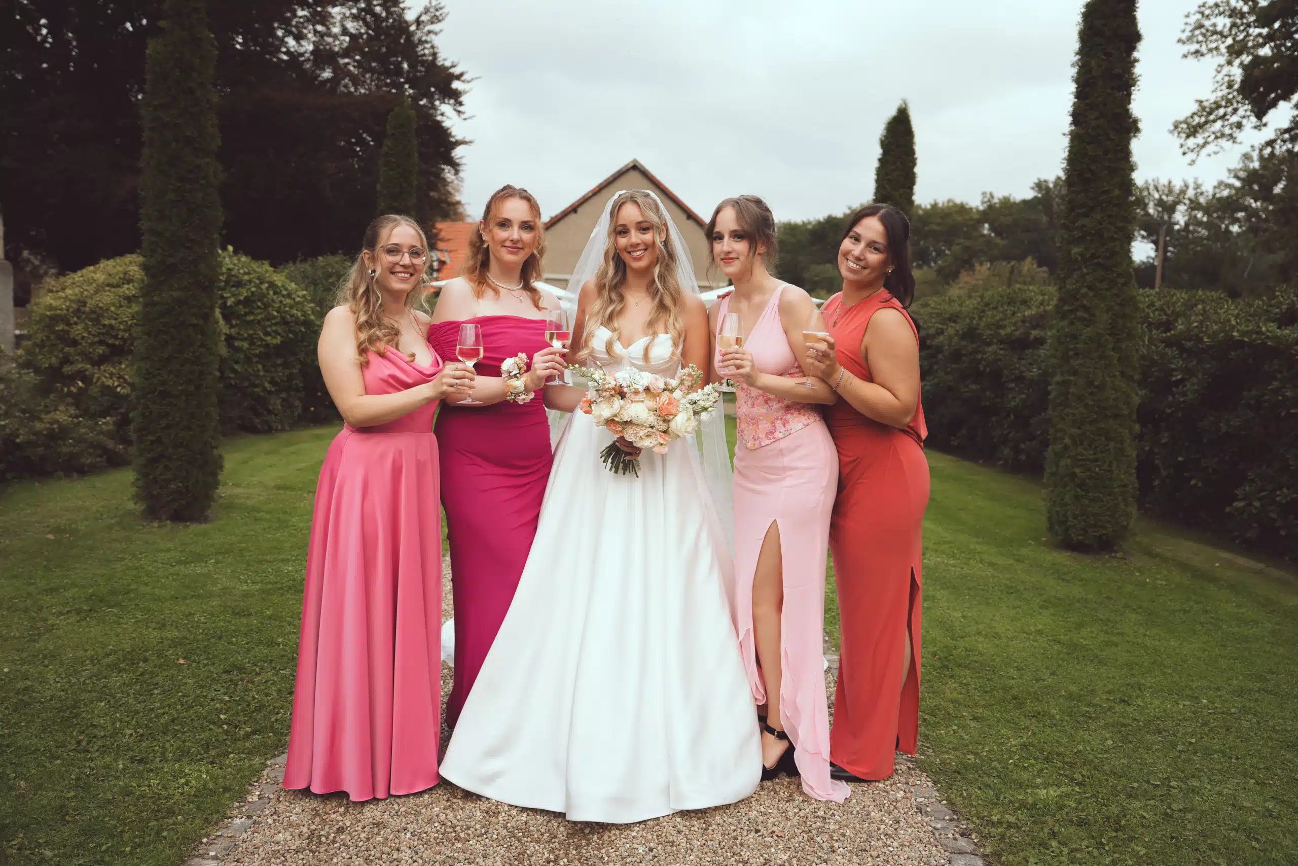 Wir haben kirchlich geheiratet, und anschließend auf dem Schloss Holtfeld mit Familie und Freunden gefeiert. Das Konzept waren sommerliche Farben pink, rosa, peach und helles butteryellow. Da wir mit 25 Jahren die ersten waren, die aus unserem Freundeskreis geheiratet haben war es für alle eine ganz besondere Feier. Wir hatten viele emotionale Momente, haben geweint, gelacht und lange und viel getanzt.