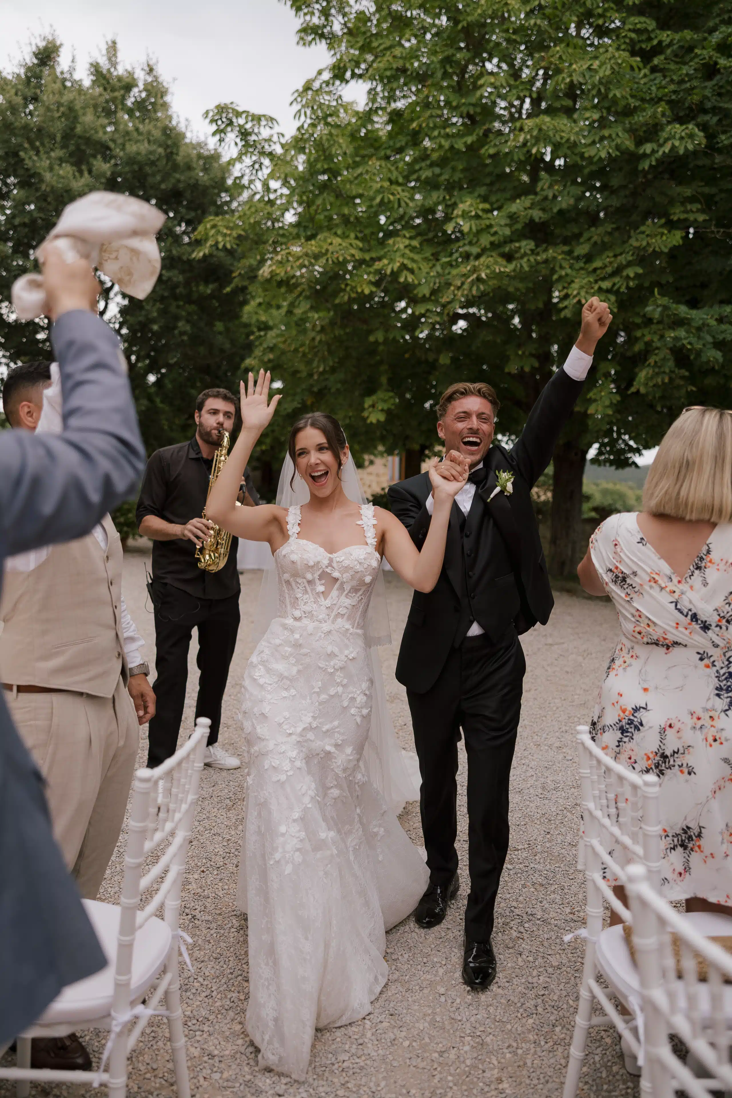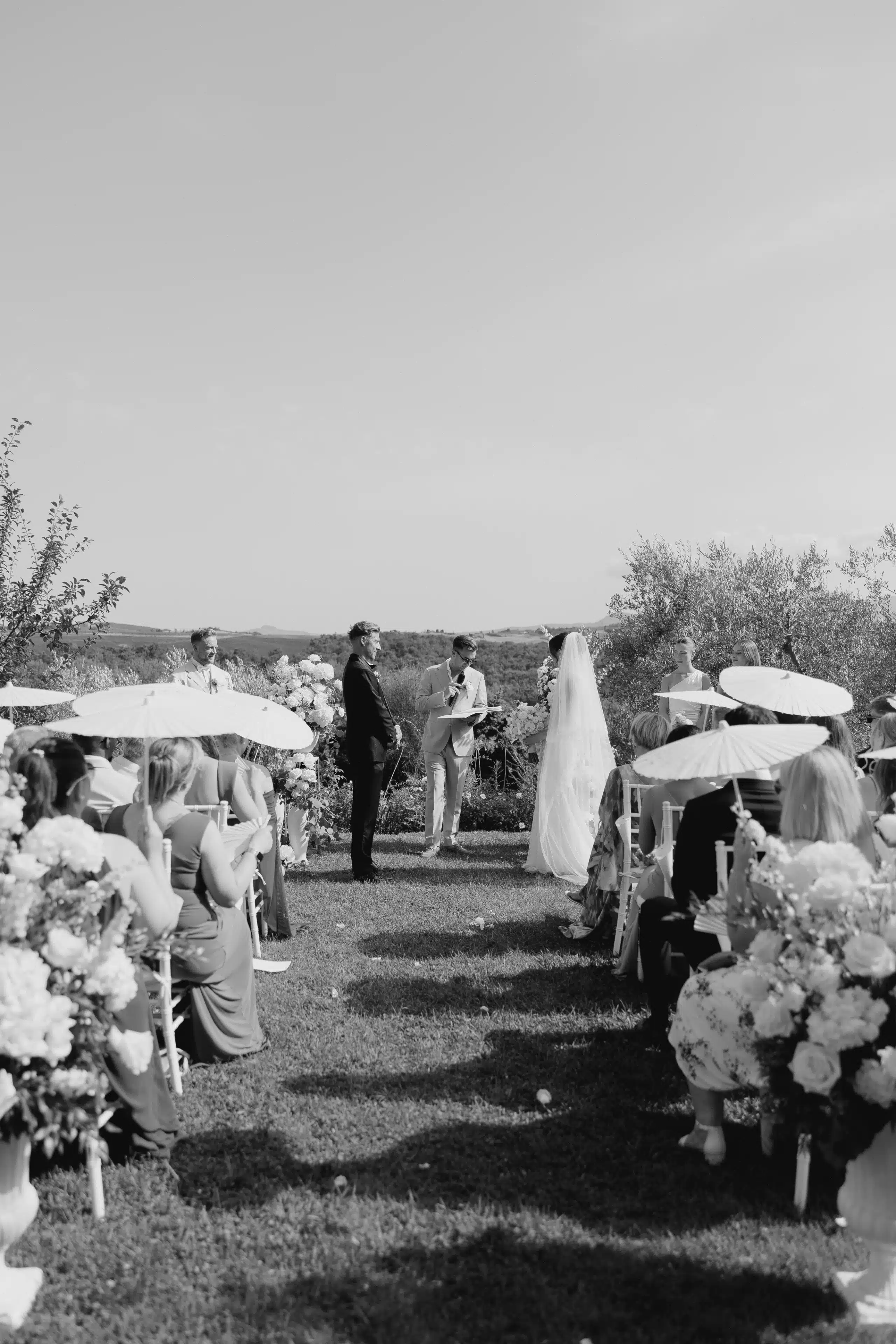 Für uns stand sofort fest: Wenn wir heiraten, dann möchten wir unsere Liebe in Italien feiern. Die Toskana hat uns mit ihrem besonderen Vibe, dem köstlichen Essen, dem Wein und der traumhaften Natur schon immer verzaubert. Im Borgo Sant’Ambrogio haben wir vier unvergessliche Tage mit unseren Liebsten verbracht. Es war romantisch und verspielt, aber bewusst minimalistisch in Weiß gehalten – denn die Natur der Toskana hat schon so viel zu bieten und sollte im Mittelpunkt stehen. Es waren Tage voller Emotionen, Liebe, Lachen und magischer Augenblicke. Alles fühlte sich an wie ein Traum, der Wirklichkeit geworden ist. Dieses kleine Fleckchen Erde wird für immer einen ganz besonderen Platz in unserem Herzen haben.
