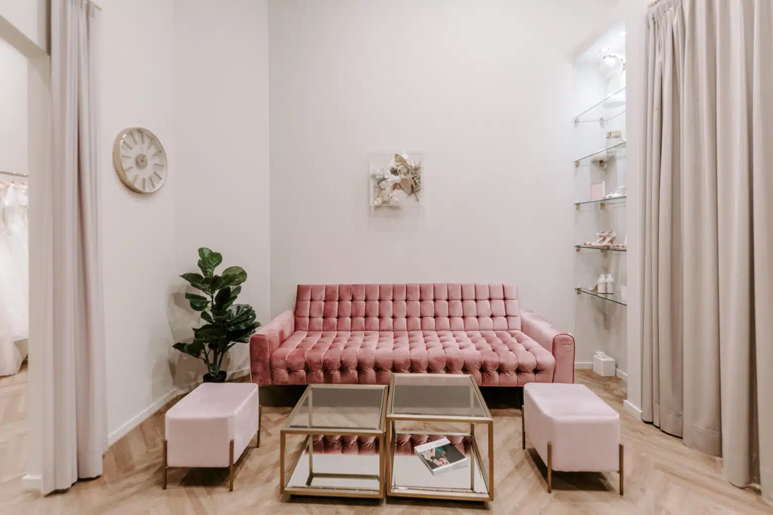 Genießt die Privatsphäre in einem für euch reservierten Salon und bucht zu eurem Termin Erlebnispakete hinzu, um die Wahl eures Brautkleides einmalig zu machen.
