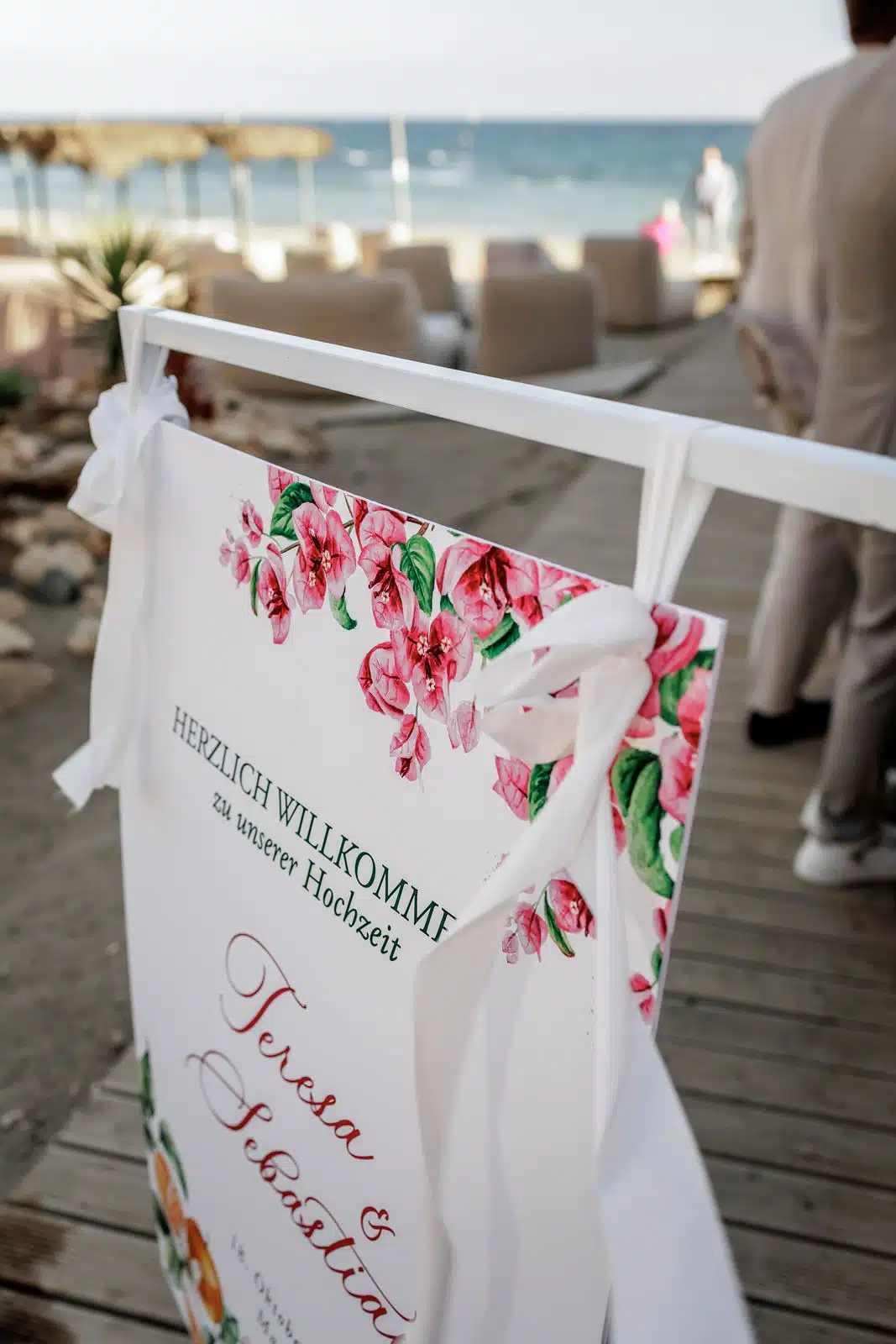Für unsere kirchliche Hochzeit in Spanien, genauer gesagt in Marbella, wünschten wir uns bewusst einen ganz anderen Stil. Inspiriert von Andalusien sollte die Hochzeit wärmer, lebendiger und farbenfroher sein. Vor allem die Farben Orange und Pink spielten dabei eine große Rolle und zogen sich durch unsere Papeterie und Dekoration. Unsere Vorstellung war eine sommerlich-elegante Hochzeit, die das andalusische Lebensgefühl widerspiegelt: bunt, herzlich und gleichzeitig stilvoll.